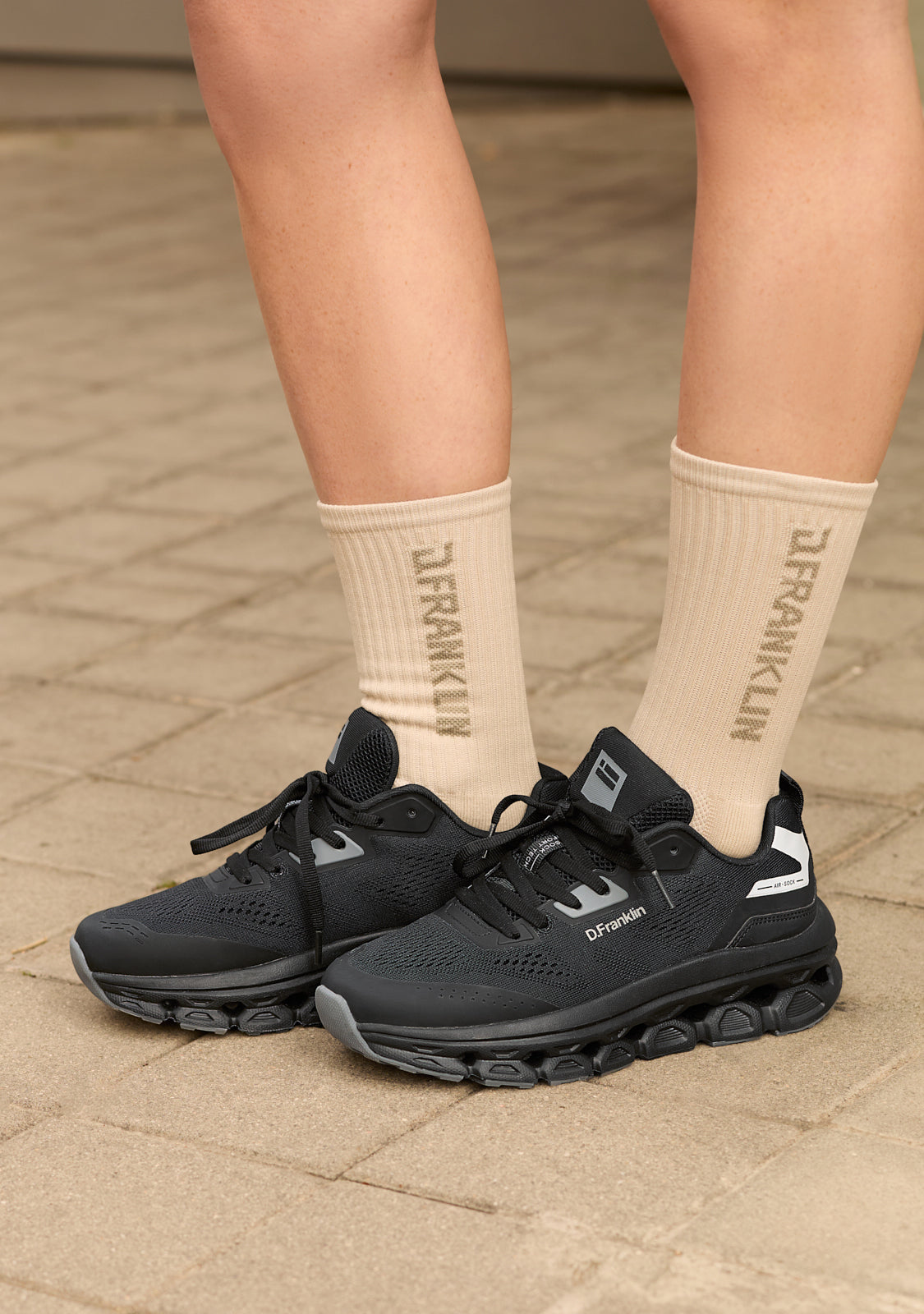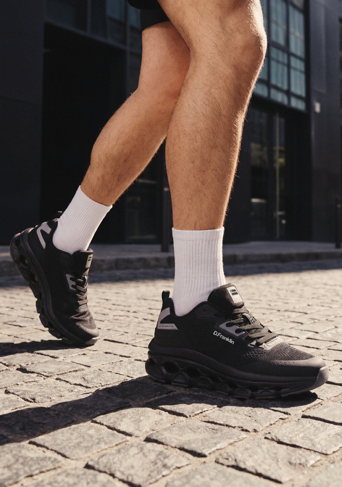The Aero Dual Full Black by D.Franklin are designed for running and daily training, with a regular fit and lace-up closure for a secure hold. The platform sole delivers a stable lift, backed by the Biomechanical Run Comfort Validation.