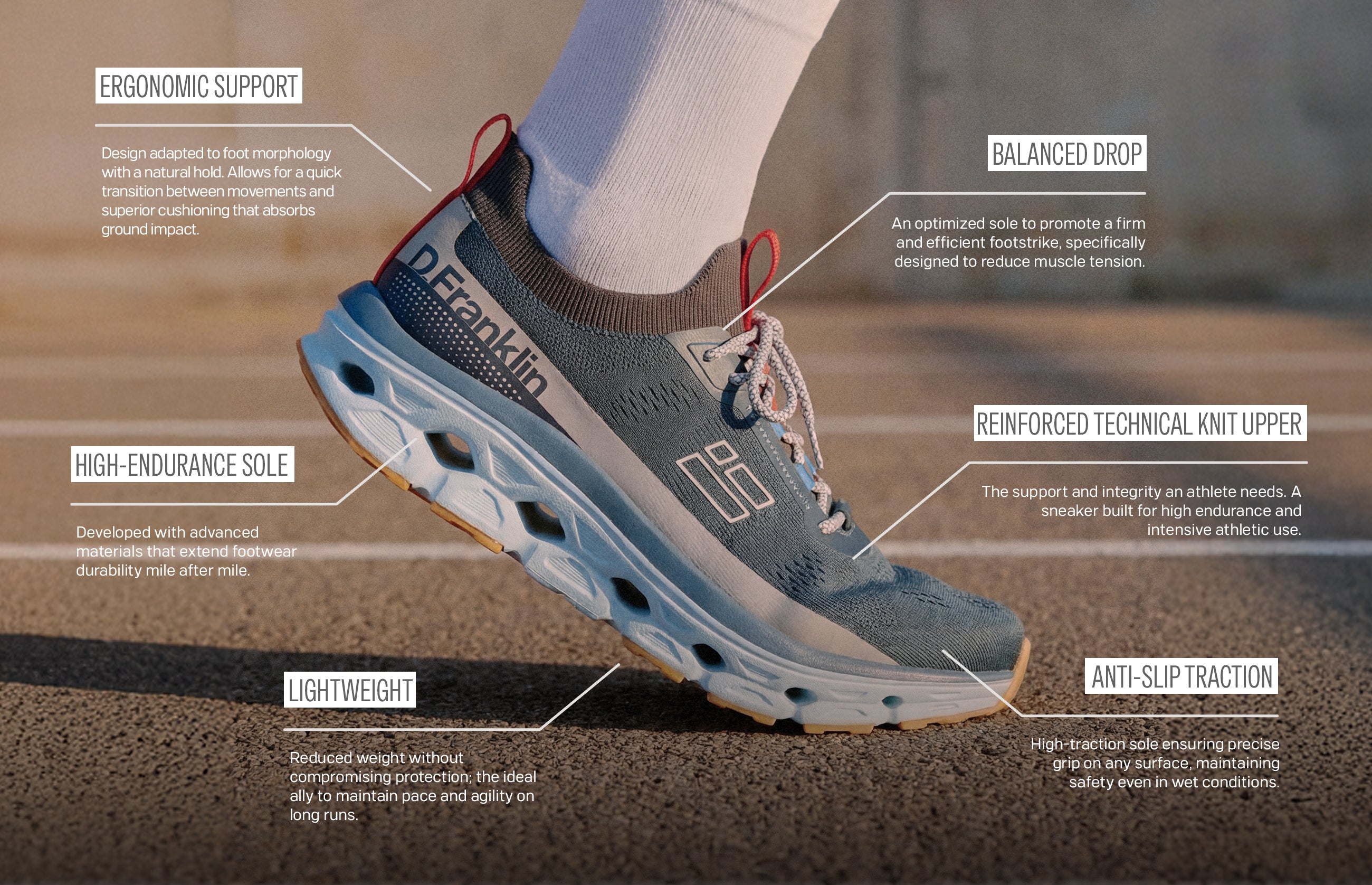 The Aero Light Khaki by D.Franklin are designed for running and daily training, with a regular fit and lace-up closure for a secure hold. The platform sole delivers a stable lift, backed by the Biomechanical Run Comfort Validation.