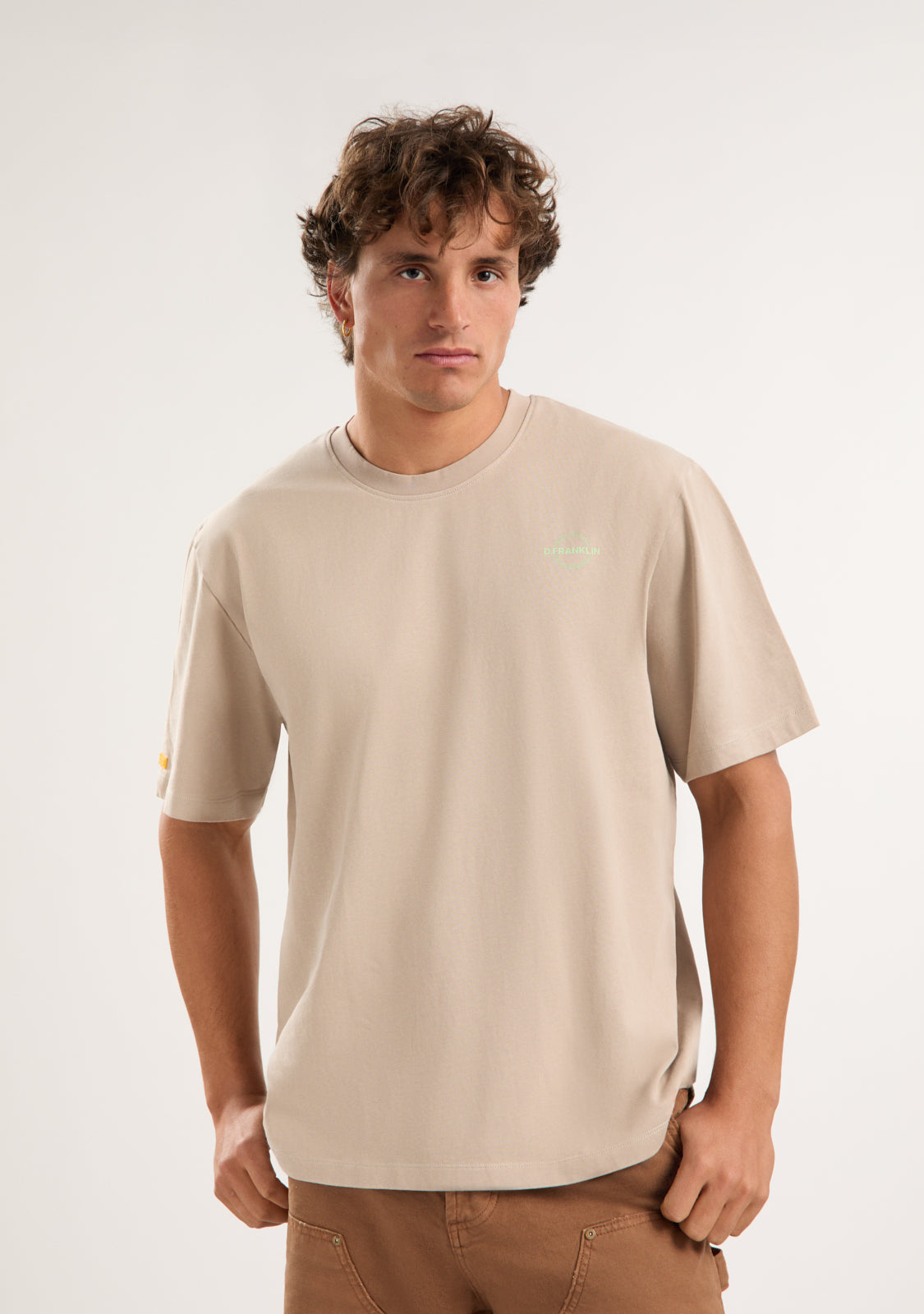 The design of the t-shirt stands out with its print on both the front and the back, adding a modern touch full of personality. Additionally, it features a rubber label on the sleeve, an exclusive detail that makes a difference.