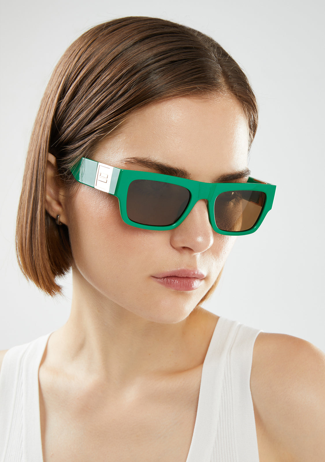 Linear front sunglasses. A model that captures the urban aesthetic in a frame with a rectangular finish. The real star for your most daring outfits. With metallic details to frame your features.