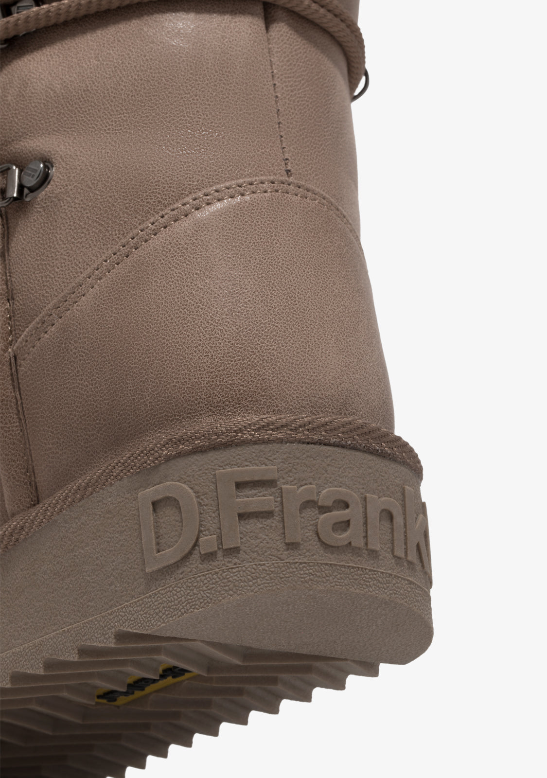 The rubber sole offers a secure grip on different surfaces, adding stability while walking. Designed with an asymmetrical high shaft in a taupe tone.