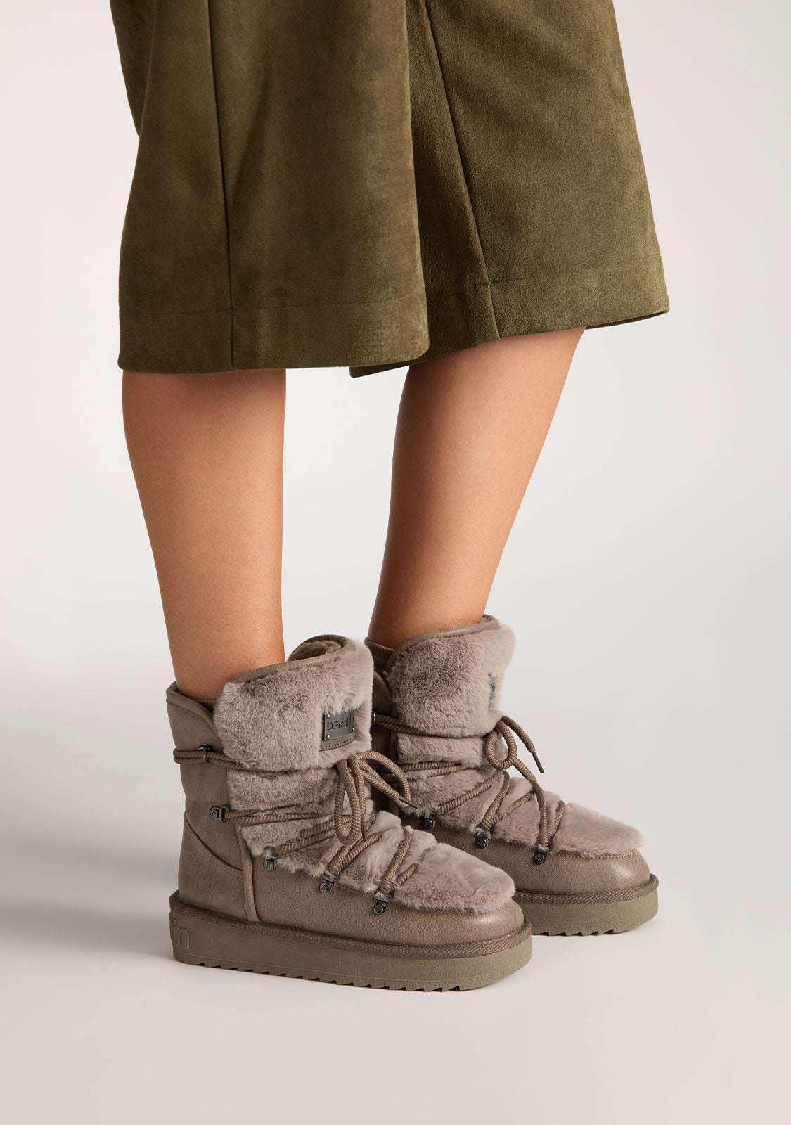 The Nordic Trk Fur Taupe boots are made with an exterior of synthetic material, designed to withstand daily wear and provide a firm structure. The upper section includes soft synthetic fur, helping to retain warmth on cold days.