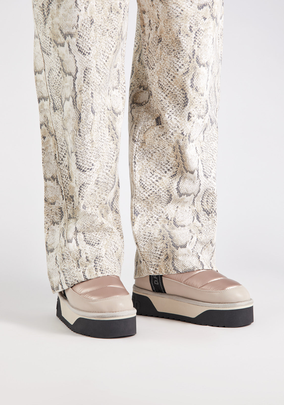 Straight-cut shaft design in beige tones and synthetic inner lining for superior warmth.