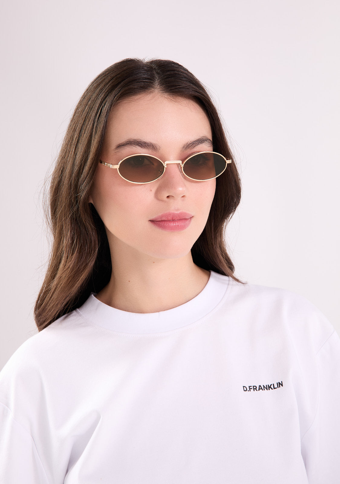 Translucent sunglasses with an oval design. The legacy of the most iconic pieces from the 70s is combined with a selection of modern details.