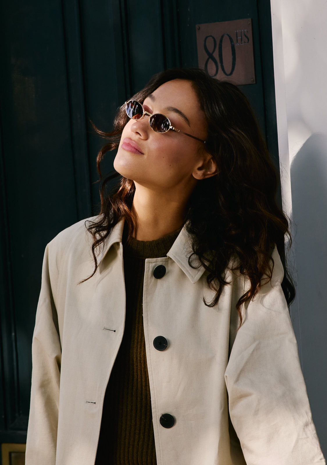 The Oval Legacy design features a metallic finish with a circular aesthetic. Its gold-tone frame is paired with gradient brown anti-reflective lenses that allow a subtle view through and define the facial features. The front measures 135 mm, and the lens width is 51 mm. The temples are 140 mm long and incorporate our distinctive detailing. A retro yet minimalist piece to frame any outfit.