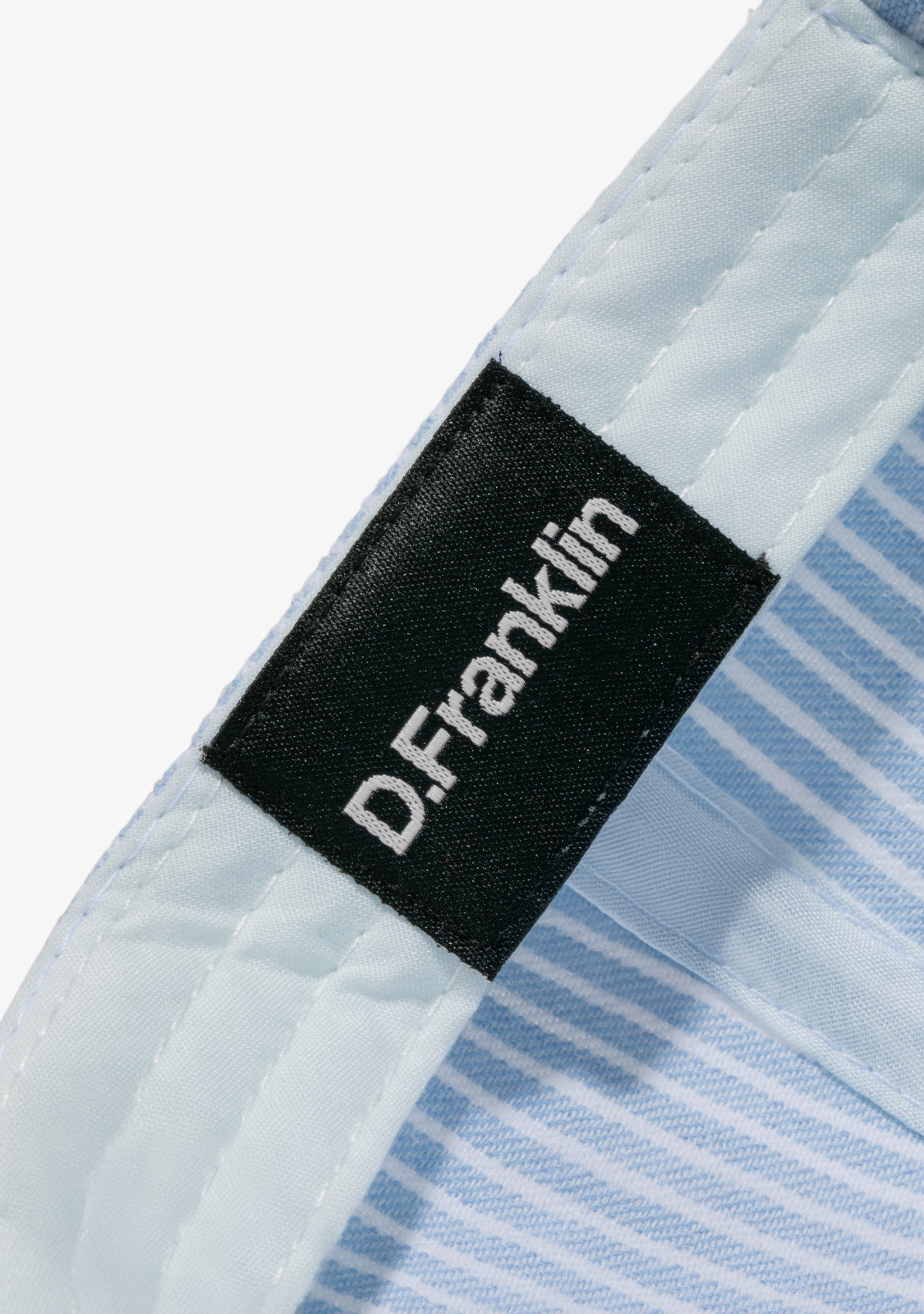 The Stripes Baseball Cap Denim by D.Franklin is a unisex cap in a light denim-blue colour with a subtle pinstripe pattern. Made from 100% cotton, it’s lightweight, breathable, and comfortable for everyday use.
