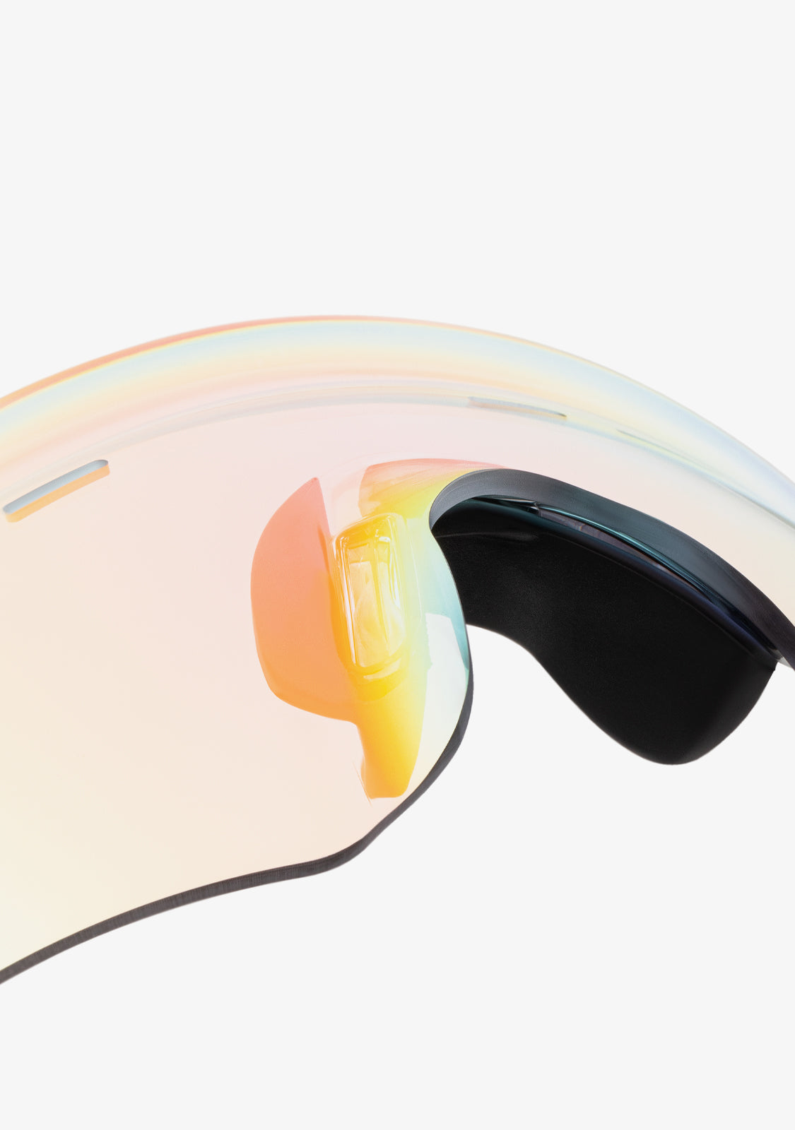 - Photochromic Smoke-Pink Revo polycarbonate lenses: optimal visibility with a sporty aesthetic