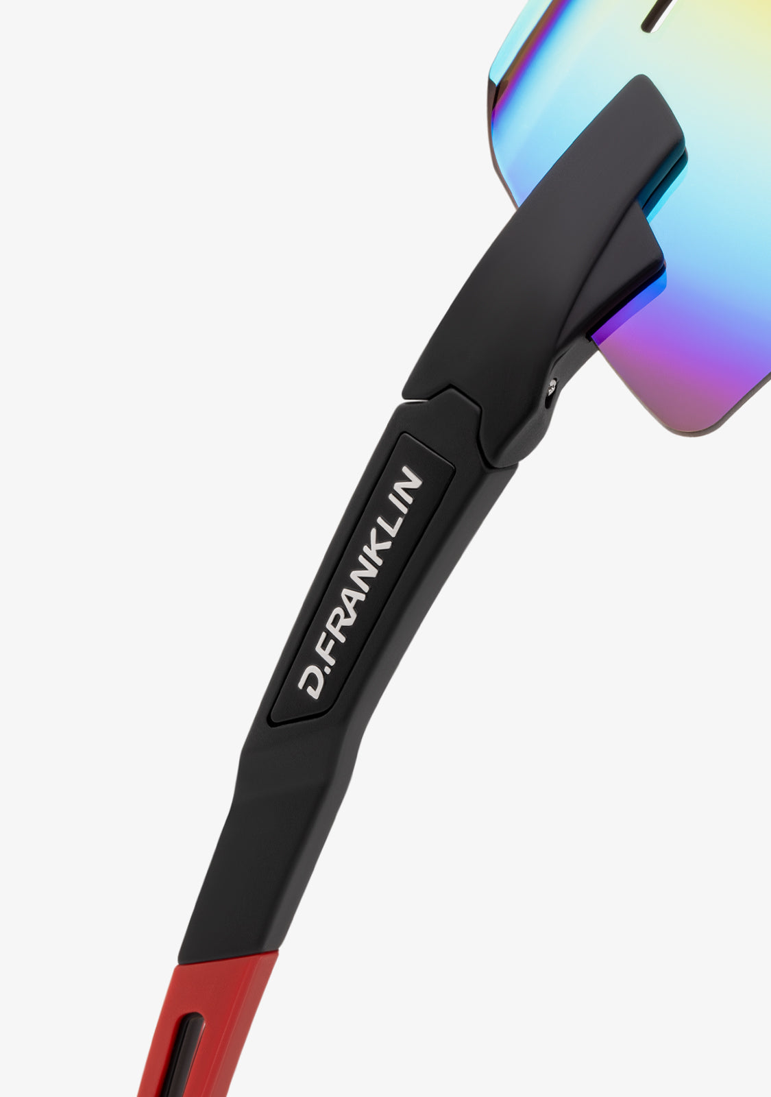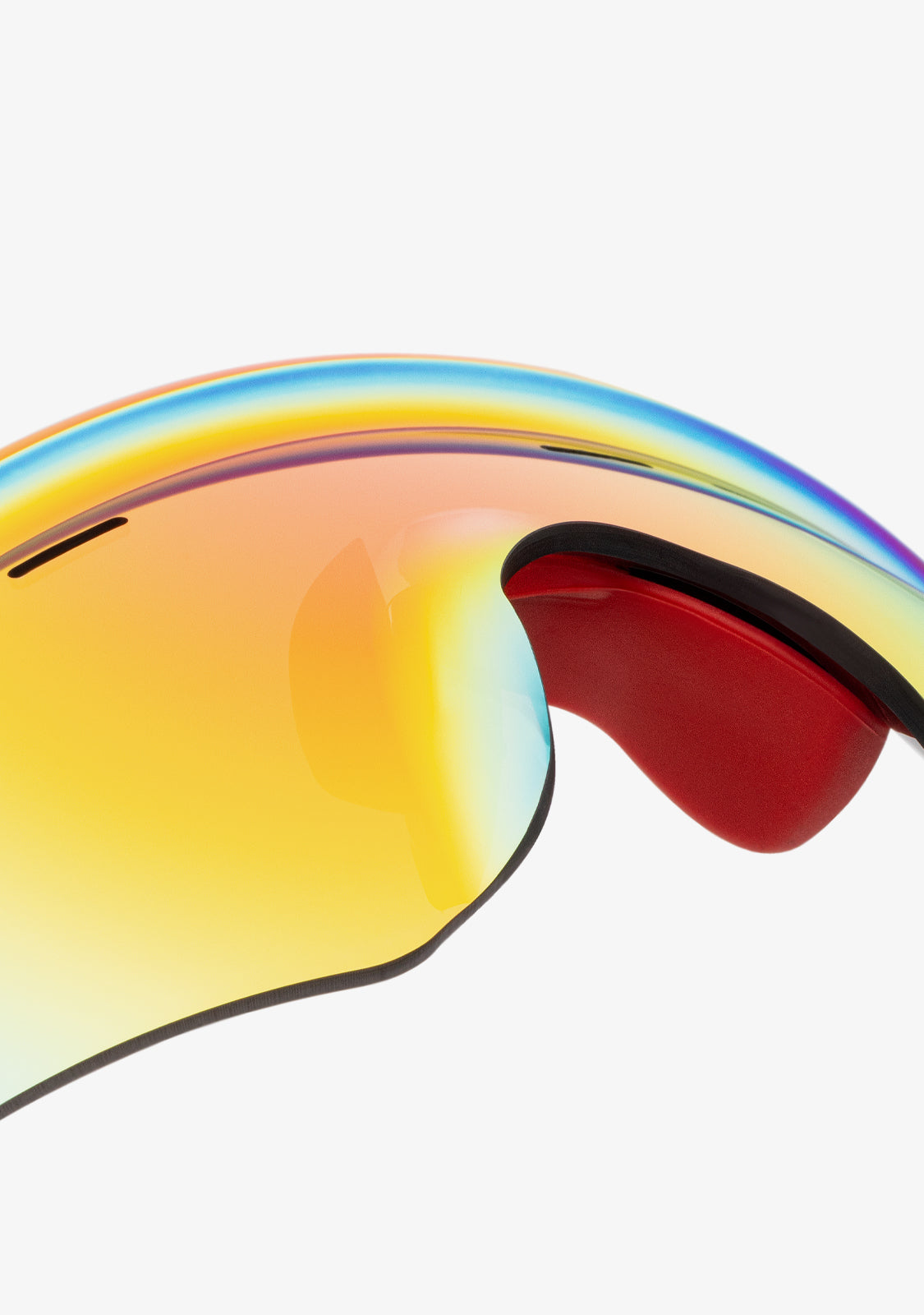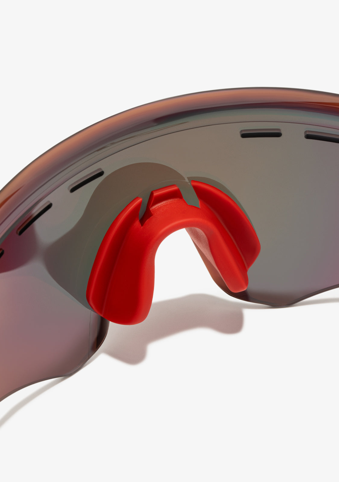 - Smoke-Red Revo polycarbonate lenses: sharp visibility with sporty aesthetics