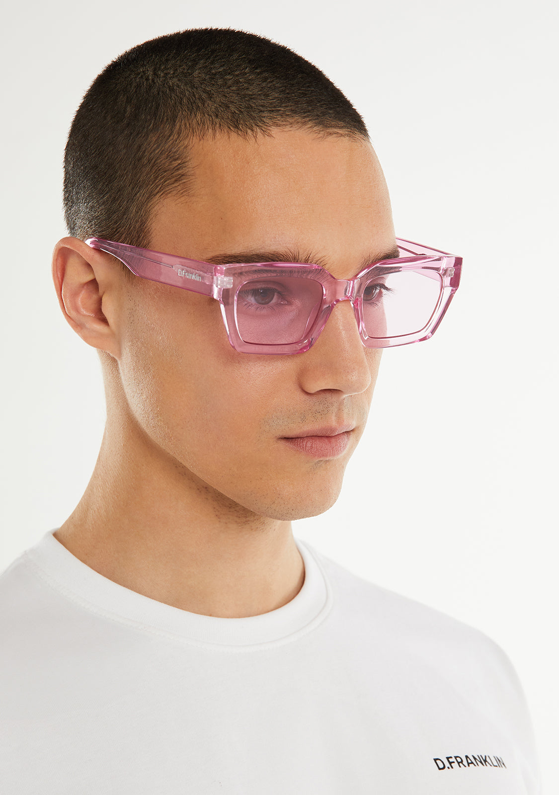 Our Tokyo model in pink tones and vintage style features the distinctive details of the D.Franklin brand, the logo engraved on the temples and the emblem on the lens. The lens width is 51 mm and the front is 143 mm. The side temples have a length of 145 mm.
