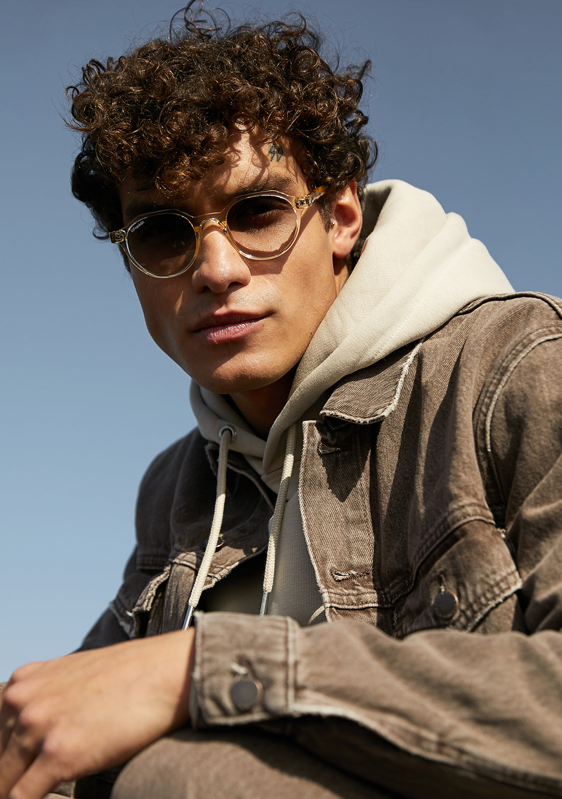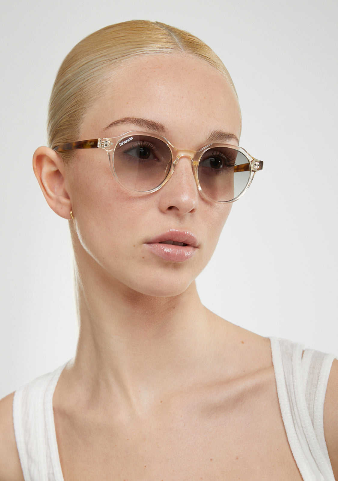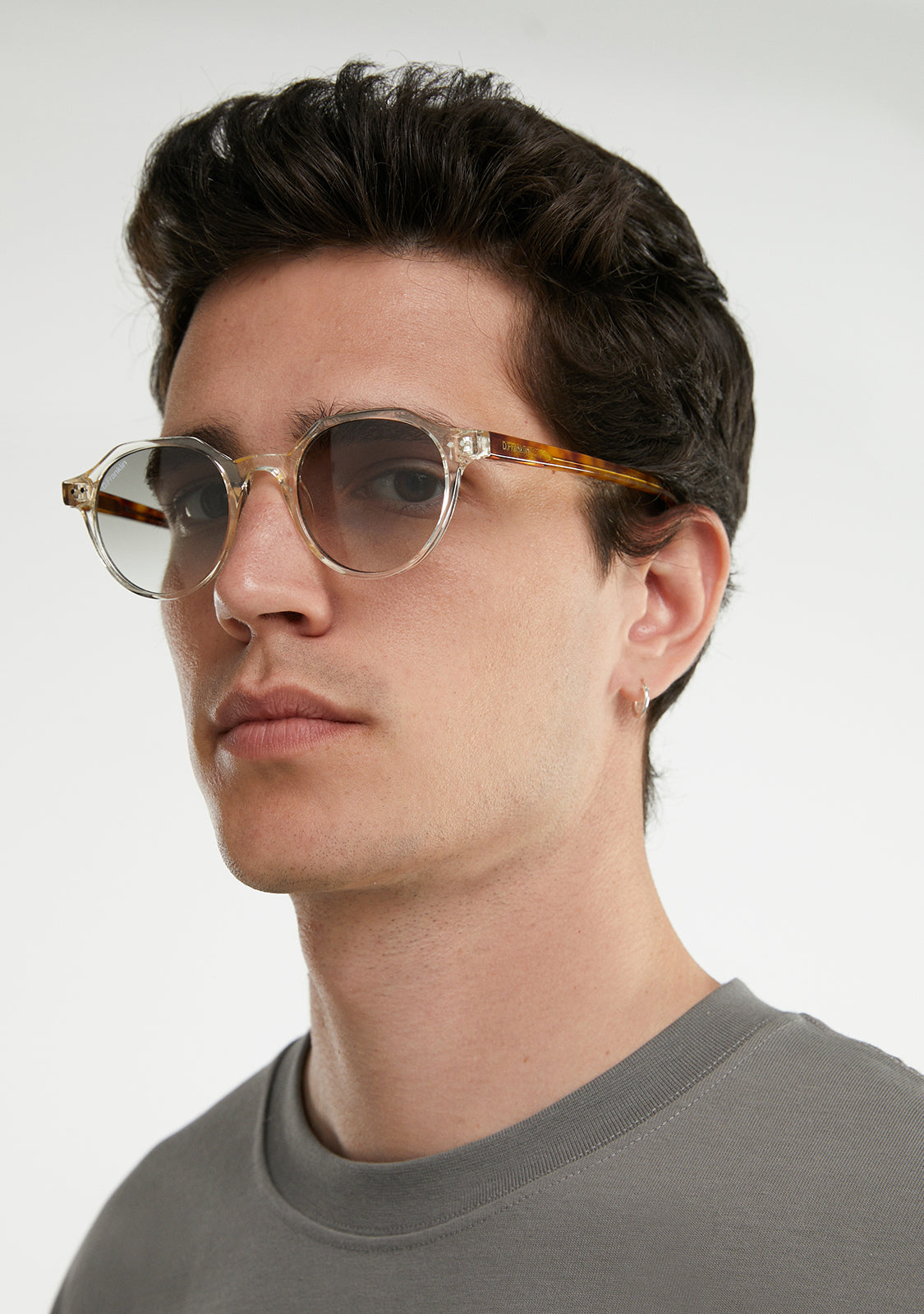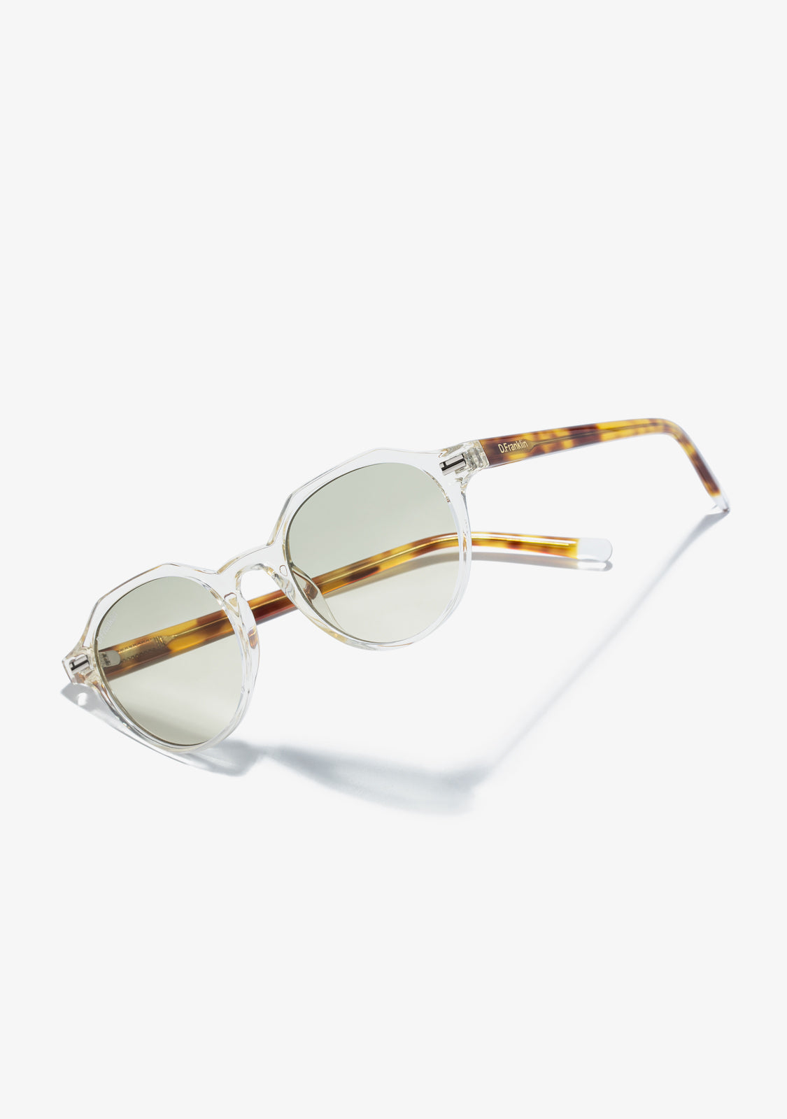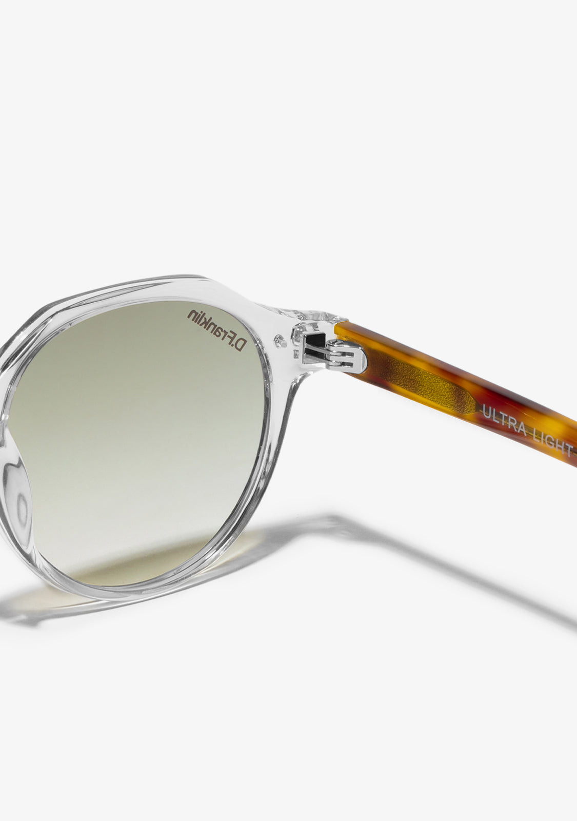 Its round, smoked gray lenses and transparent TR90 frame highlight the timelessness of this model, with a different touch. It features our distinctive D.Franklin details: the logo engraved on both metal temples and our emblem on the right lens. With a lens width of 47 mm and a front frame of 138 mm, these glasses flatter most faces. The side temples have a length of 145 mm.