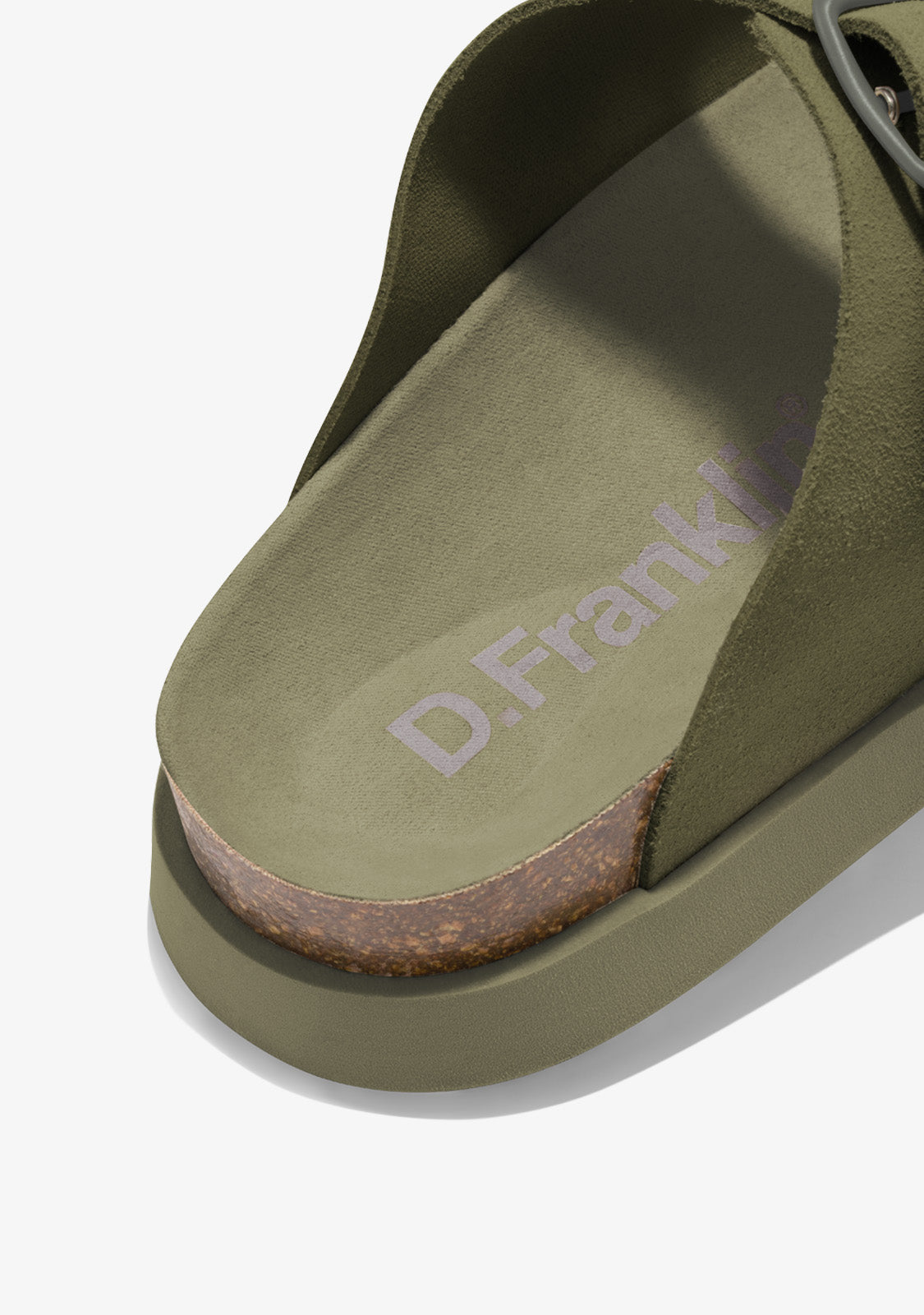 Discover the perfect combination of style and comfort with the Vibe Sandals Buckle Dark Khaki by D.Franklin. Designed with a cow suede upper, these sandals offer a soft touch and elegant finish, perfect for complementing any look.
