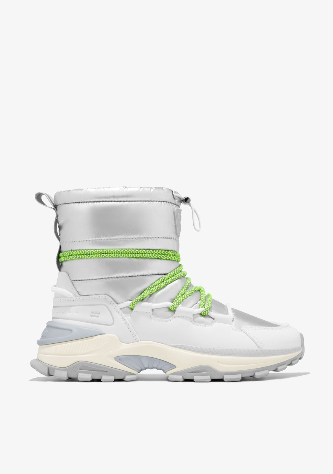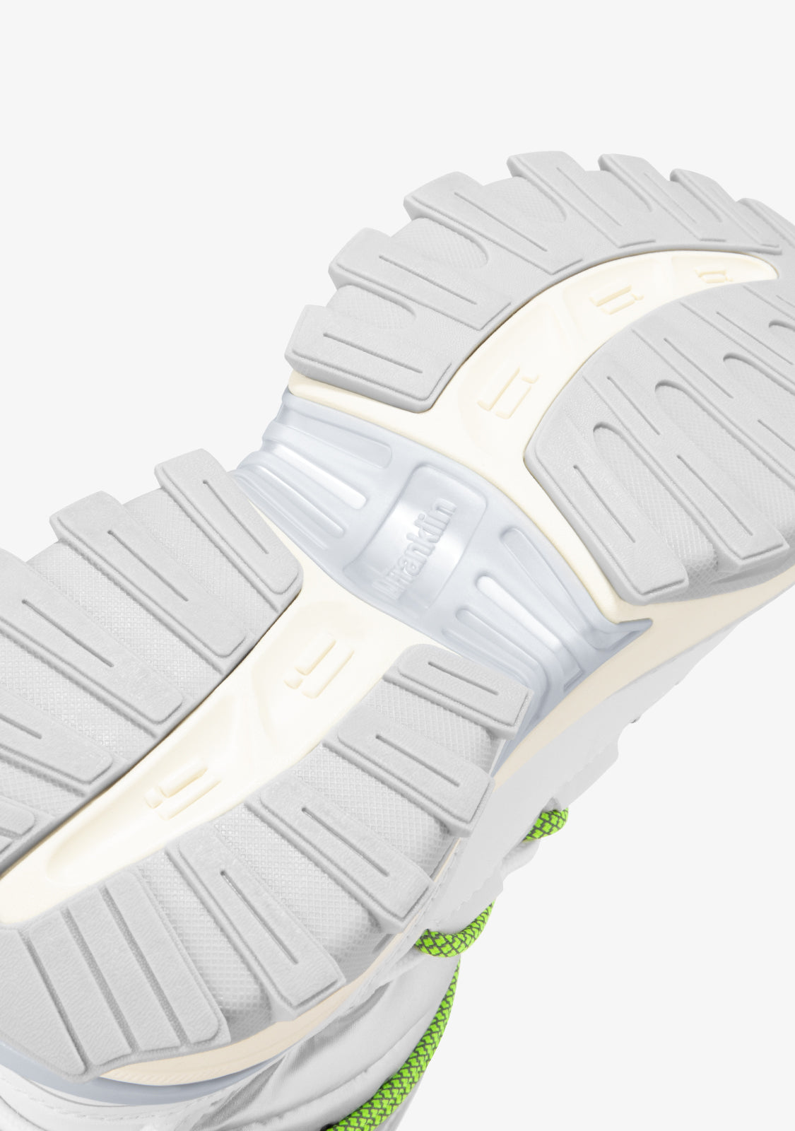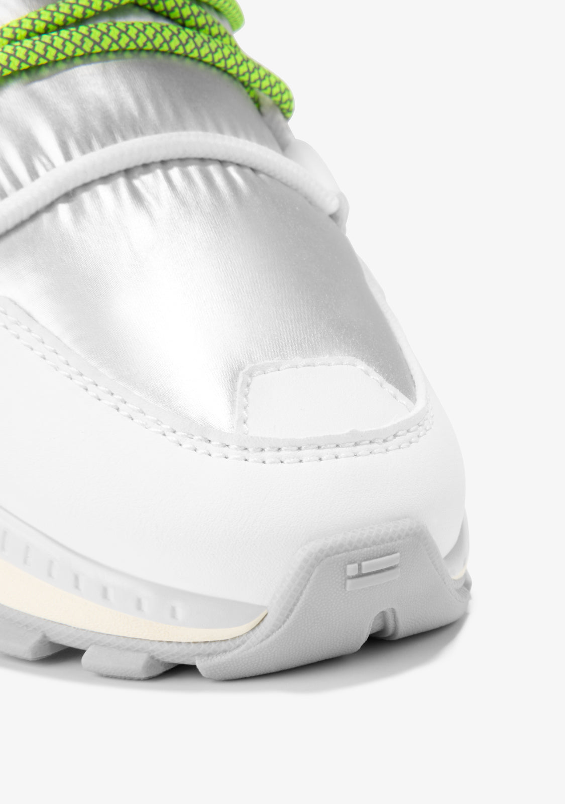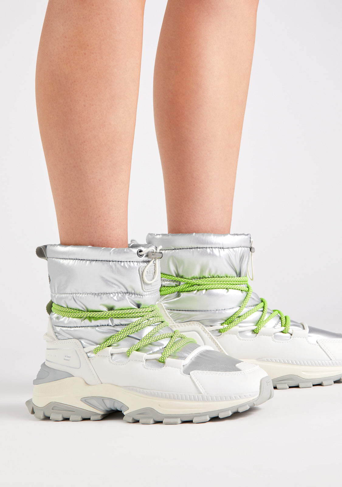 Dizajn s visokim rezom izrađen od fleksibilnih i laganih materijala. Ovaj dizajn ima podstavljeni završetak u srebrnim tonovima s višepozicionim vezicama u zelenoj boji. Prikazuje našu zastavu i natpis na peti i prednjem dijelu, kao i podesivu kopču na vrhu.