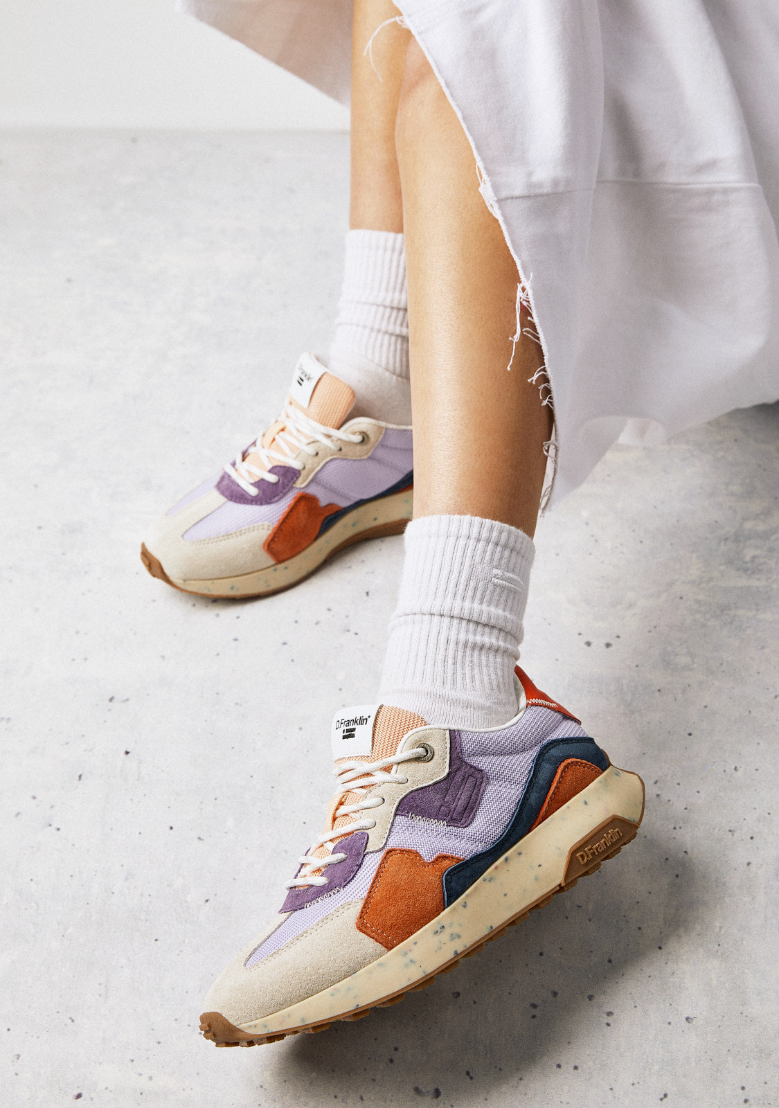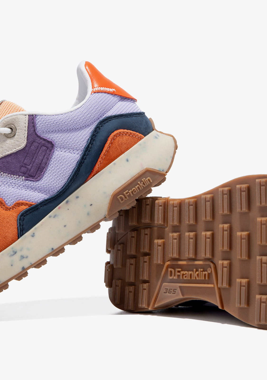 Ovaj model kombinira narančaste, sive i ljubičaste tonove u dizajnu koji se ističe svojom jedinstvenošću. Ima D.Franklin zastavu sa strane i vezanje za savršeno pristajanje. Osim toga, ima potplat s dvije gustoće. Prvi je napravljen od recikliranih materijala za udoban i lagan korak, a drugi je reljefan kako bi pružio prianjanje.