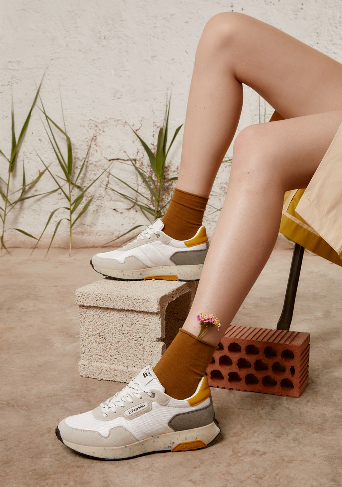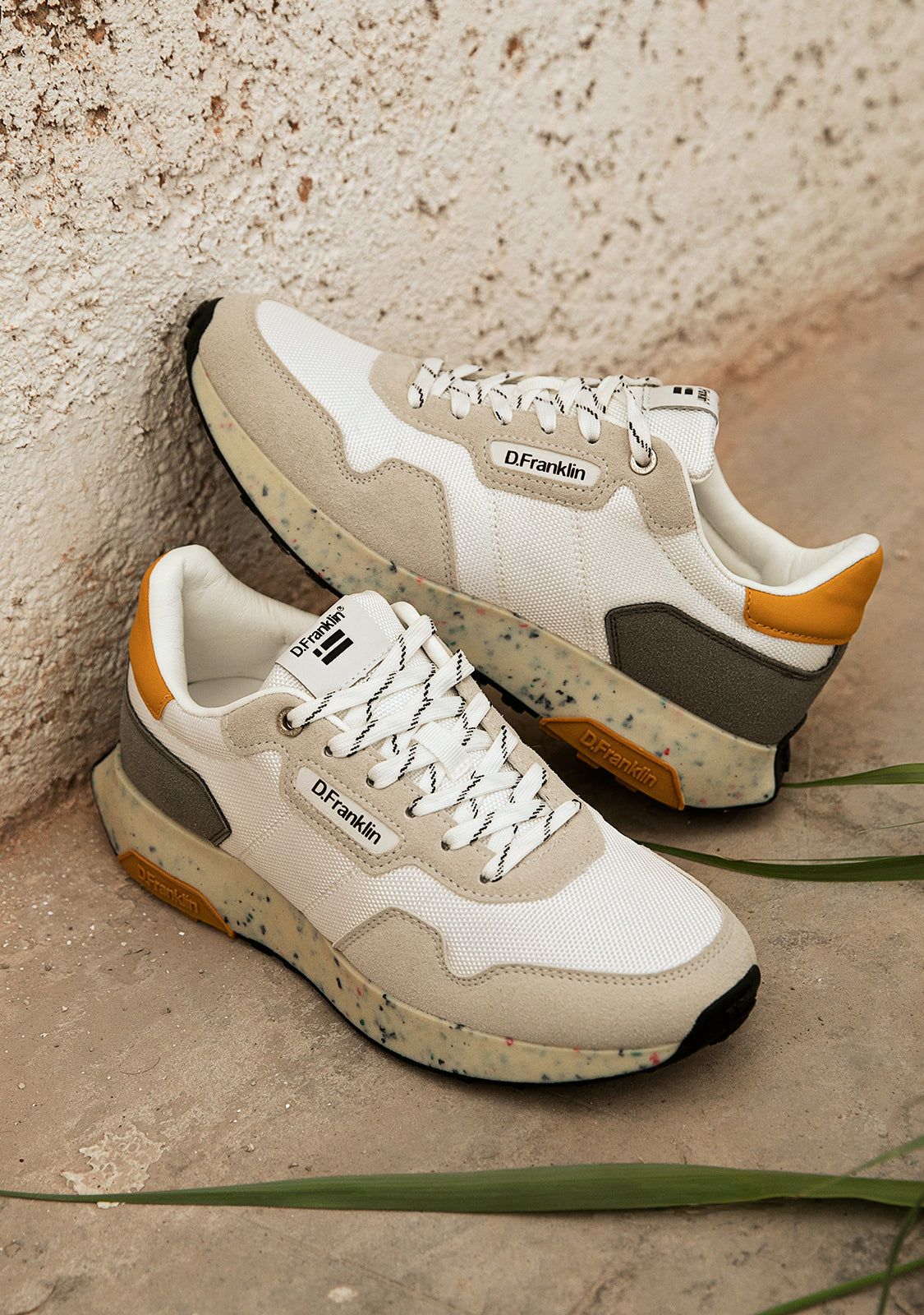 Ovaj model kombinira jednostavnost neutralnih tonova u dizajnu koji se ističe svojom jedinstvenošću. Ima D.Franklin oznaku sa strane i pamučne vezice za savršeno prianjanje. Također ima potplat s dvije gustoće. Prvi je izrađen od recikliranih materijala za udoban i lagan korak, a drugi je reljefan kako bi pružio prianjanje.