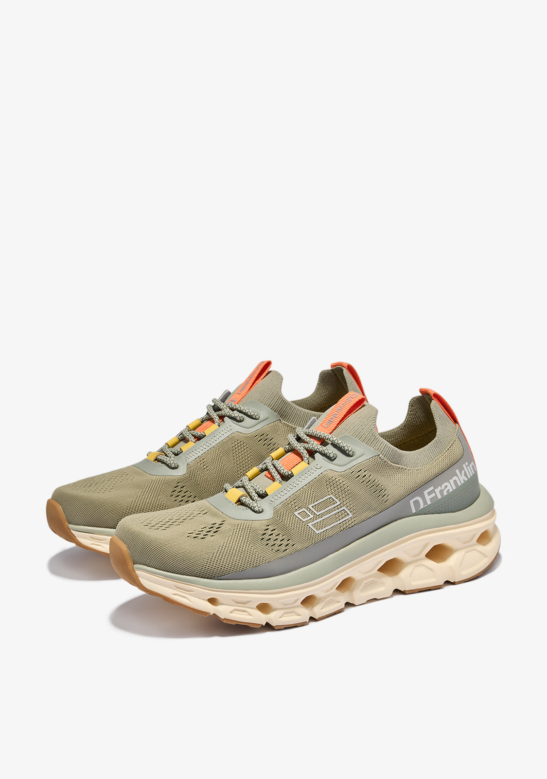Aero Matcha Green od D.Franklina dizajnirani su za trčanje i svakodnevni trening, s regularnim krojem i vezanjem za sigurno držanje. Platforma pruža stabilan uzlet, potkrijepljen Biomehaničkom udobnošću trčanja Validacijom.