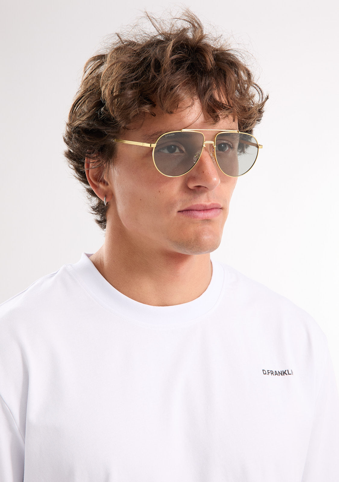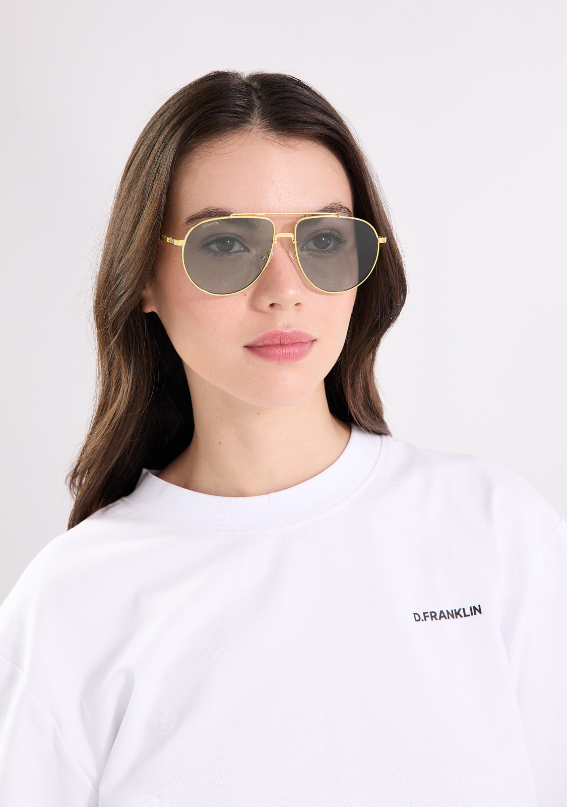 Aviator Legacy Gold / Photochromic G15 od D.Franklina kombinira klasični dizajn s naprednom tehnologijom, nudeći jedinstveno iskustvo sunčanih naočala. Okvir, most i ručke izrađeni su od izdržljivog metala, osiguravajući udobno pristajanje za različite oblike lica.