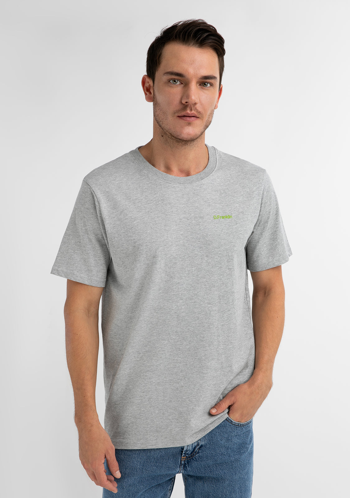 Suština minimalističkog stila odražava se u sivoj majici. Svestranost, elegancija i funkcionalnost preuzimaju ovaj ikonični model s dušom D.Franklin.