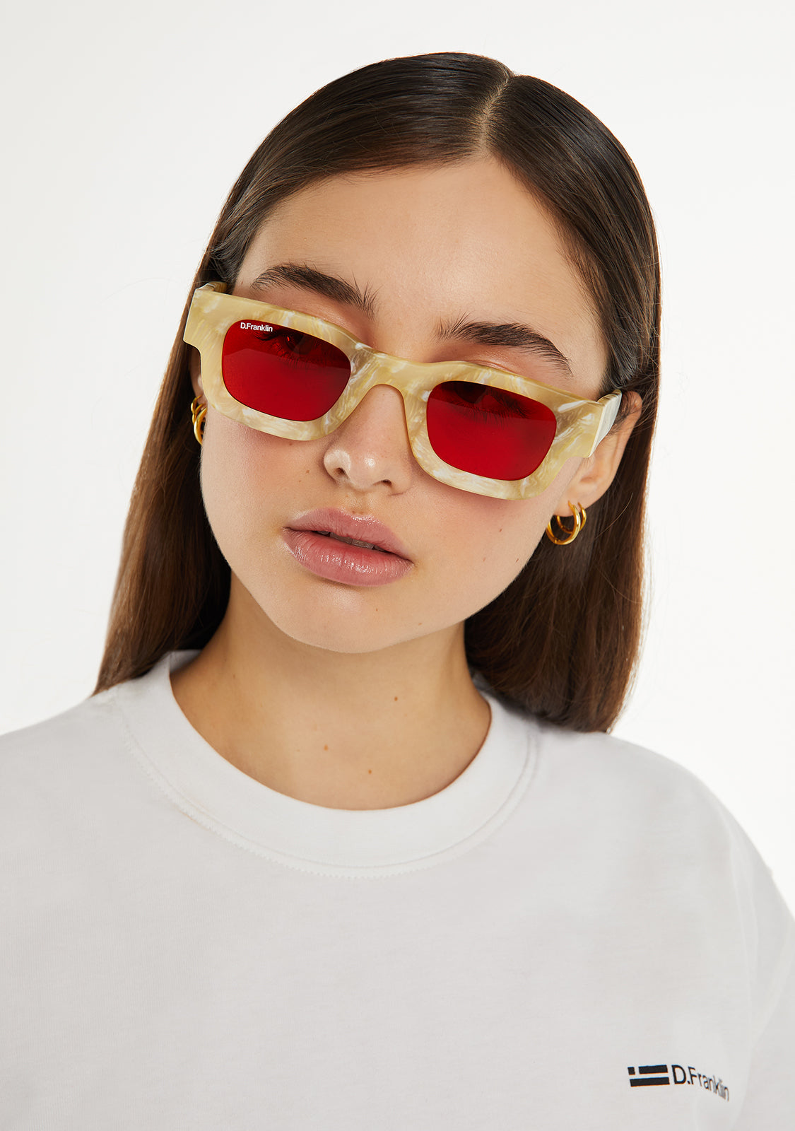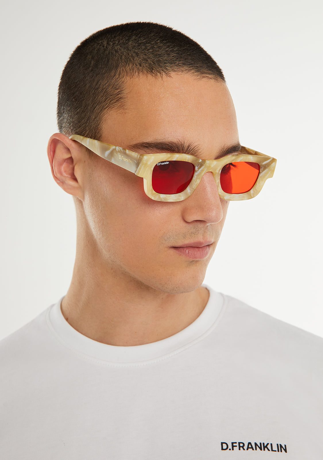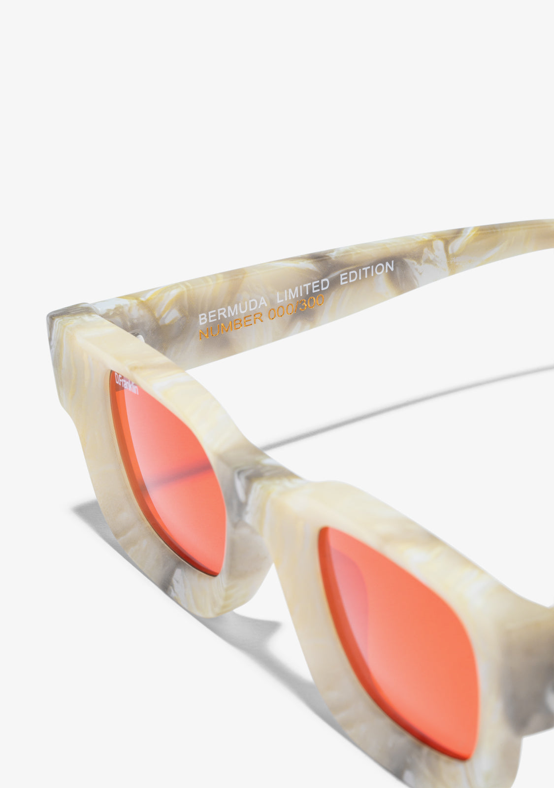 Bermuda White Stone je dizajn s mat završnom obradom napravljen od materijala inspiriranih bijelim mramorom. Debeli okviri i crvenkaste leće predstavljaju naše različite prizme, uokvirene u prevelikoj pravokutnoj silueti posebno dizajniranoj za interakciju s novim prostorima.