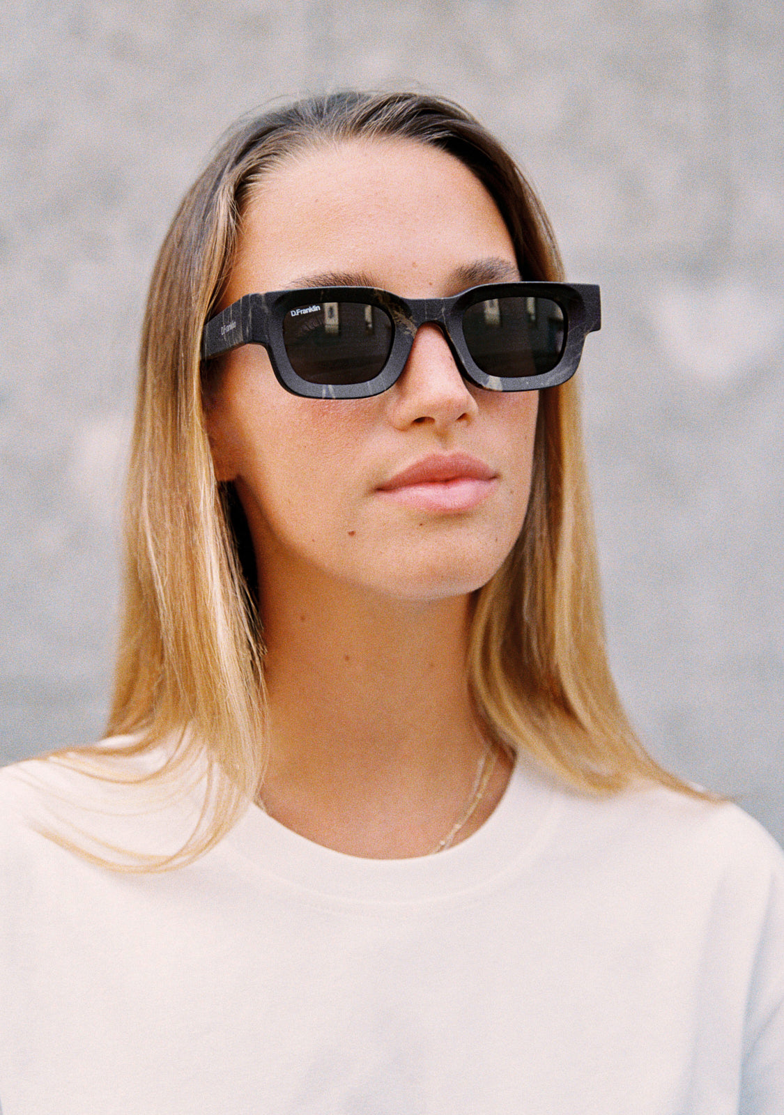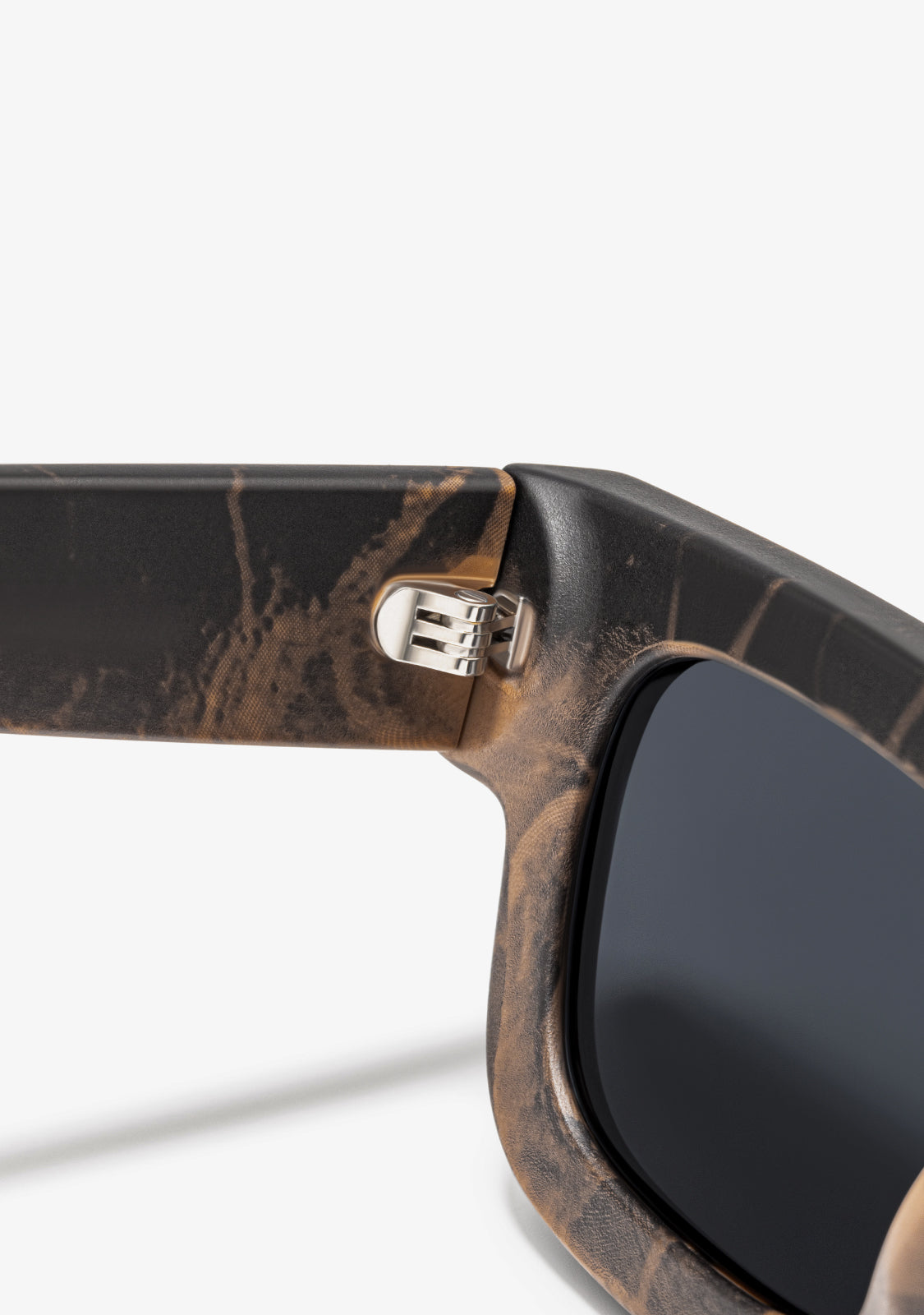 Bermuda Wood Grey je dizajn s mat završnom obradom napravljen od materijala inspiriranih vulkanskim stijenama. Debeli okviri i dimljeni leće predstavljaju naše različite prizme, uokvirene u prevelikoj pravokutnoj silueti posebno dizajniranoj za interakciju s novim prostorima.