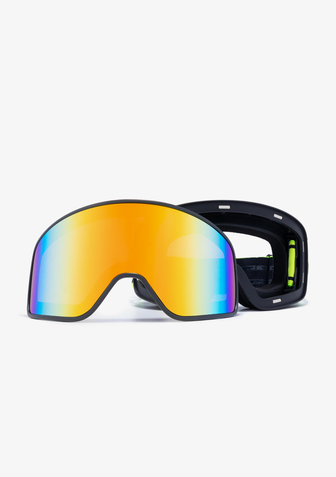Ovaj model inspiriran vrhom ima zrcalni polikarbonatni leća bez ograničenja ili okvira. Ima crno-crvenu završnu obradu s našim prepoznatljivim grbom sa strane svog zelenog elastičnog remena. Uniformna širina leće je 179,5 mm.