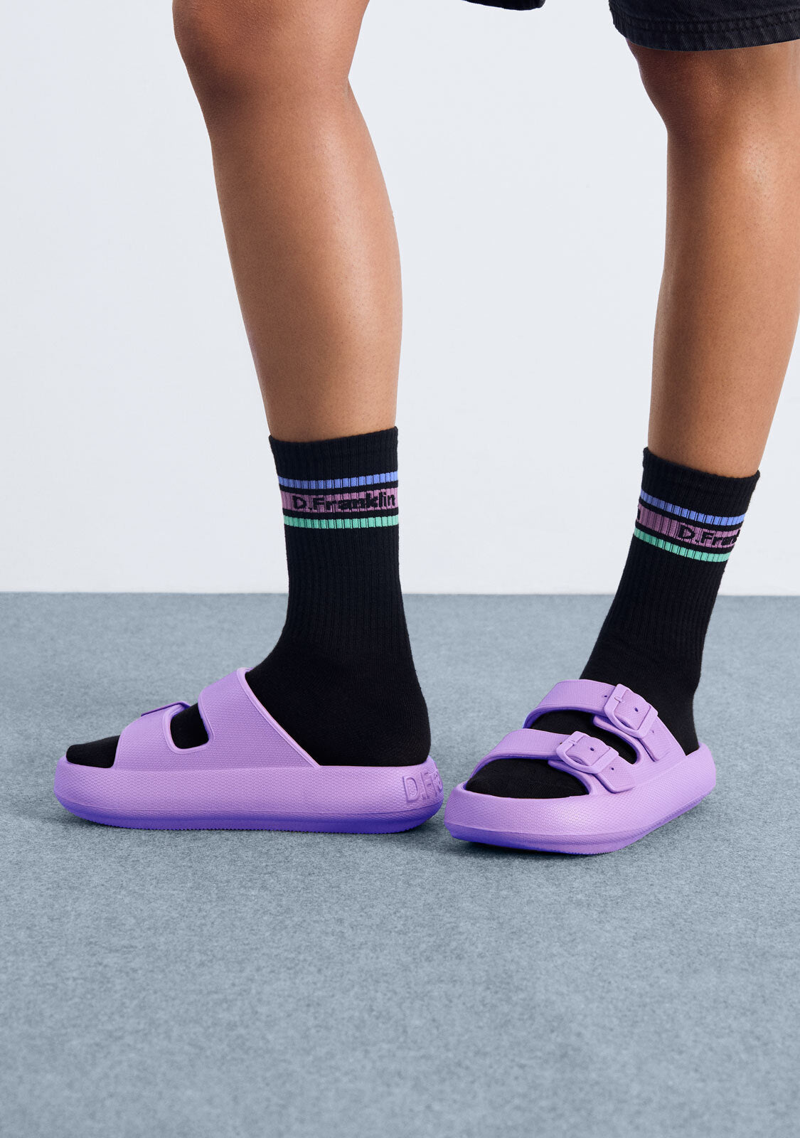Povećajte svoju udobnost i stil ovog ljeta s Bloomer Bio Lavanda sandalama od D.Franklina. Izrađene od EVA materijala, ove sandale nude izvanrednu lakoću i izdržljivost koja podržava svaki vaš korak. Njihova dvostruka gustoća potplate pruža vrhunsku amortizaciju, osiguravajući udobnost tijekom cijelog dana.