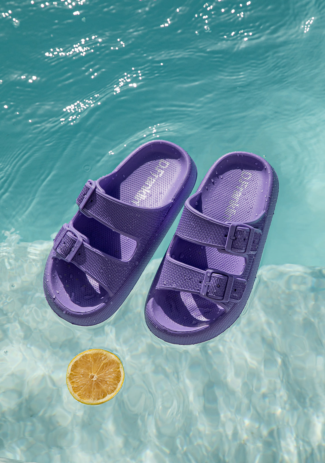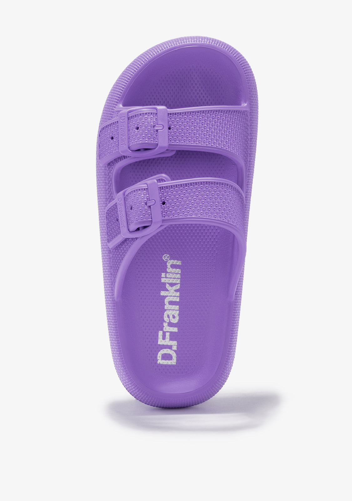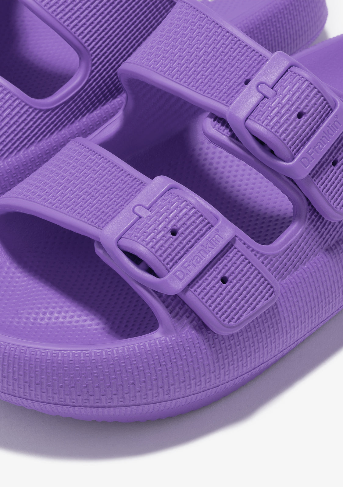 Šeširi ljubičaste boje preplavljuju pijesak na plaži Pfeiffer u Kaliforniji u ovim sandalama. Izrađene su od EVA materijala za lagan korak. Dizajnirane su s zaobljenim siluetom i dvostrukim kopčanjem u lavanda boji. D.Franklin logo na potplatu. Sandale Bloomer Bio su malo manje. Preporučujemo da odaberete broj veći od uobičajenog.
