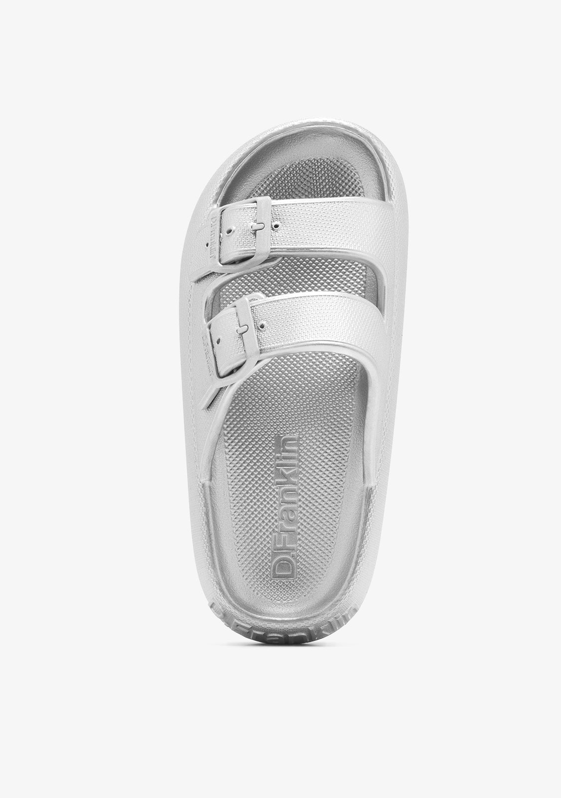 Povećajte svoju udobnost i stil ovog ljeta s Bloomer Bio Silver sandalama od D.Franklina. Izrađene od EVA materijala, ove sandale nude izvanrednu lakoću i izdržljivost koja podržava svaki vaš korak. Njihova potplat s dvostrukom gustoćom pruža vrhunsku amortizaciju, osiguravajući udobnost tijekom cijelog dana.