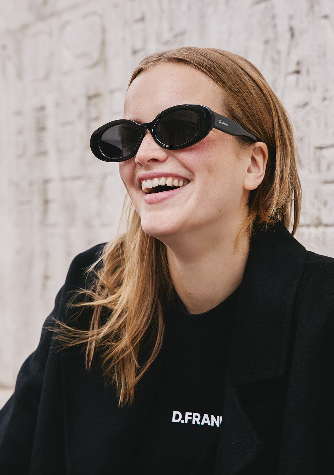 Naš Capri model u crnoj boji ima prepoznatljive D.Franklin detalje, logo ugraviran na sljepoočnicama i grb na leći. Širina leće je 53 mm, a prednja strana je 150 mm. Duljina sljepoočnica je 145 mm.