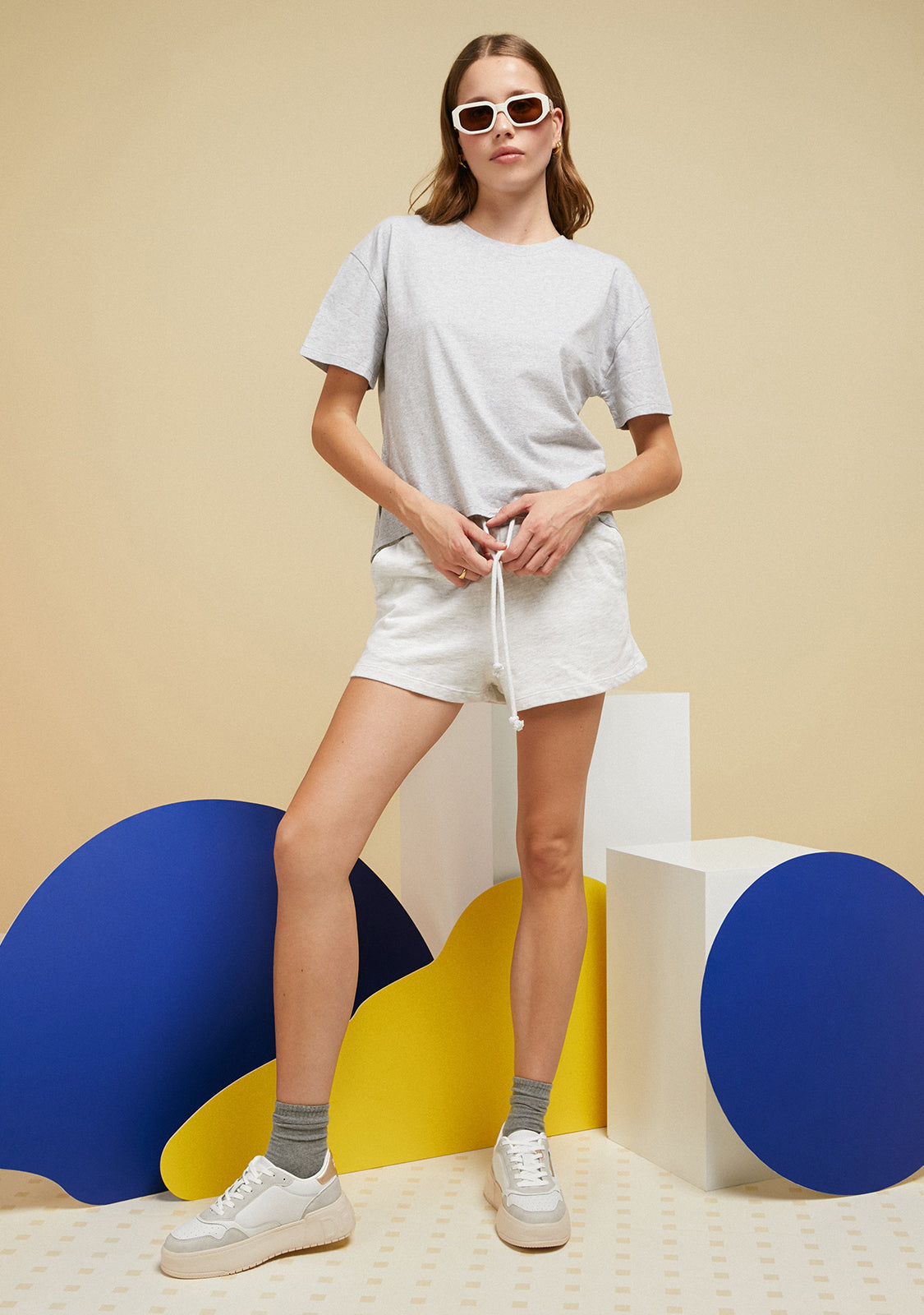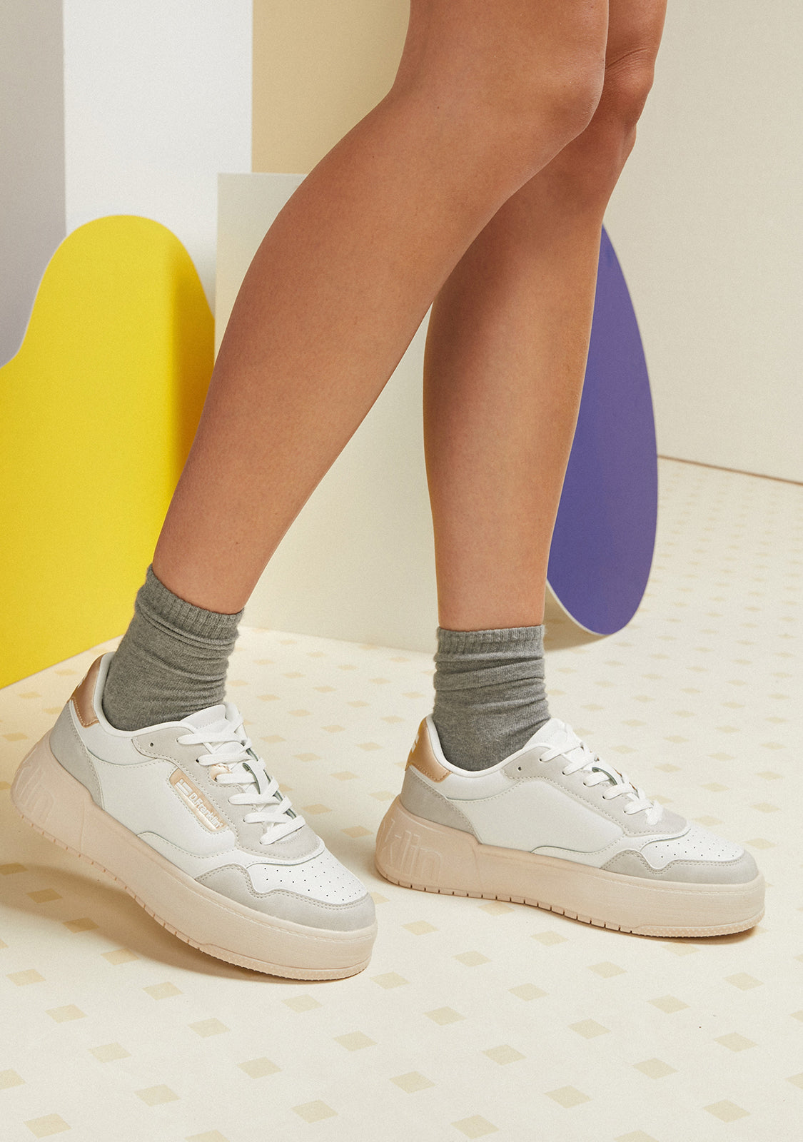 Court tenisice su izrađene s zlatnim i sivim detaljima. Imaju pamučne vezice i potplat s utisnutim logotipom na peti, potplatu i strani. Potplat visine 4 cm ima phylon jastučić za lagano ublažavanje.
