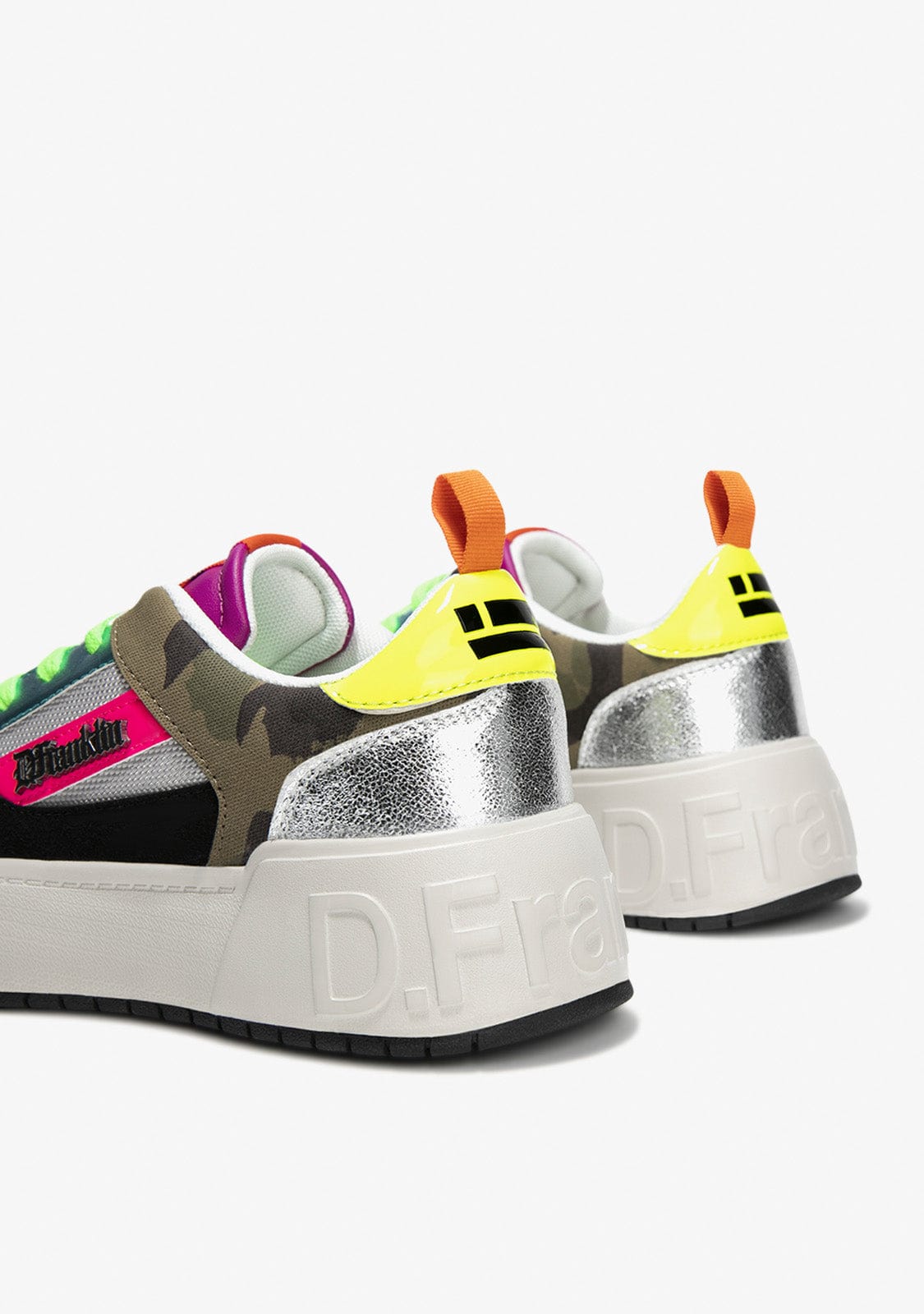 Model Court D.Franklin izrađen je s višebojnim detaljima, sjajem i vojnim uzorkom. Imaju potplat s utisnutim logotipom na peti, potplatu i strani. S visinom od 4 cm i phylon potplatom za lagano ublažavanje. Anatomsku uložak također je moguće ukloniti.