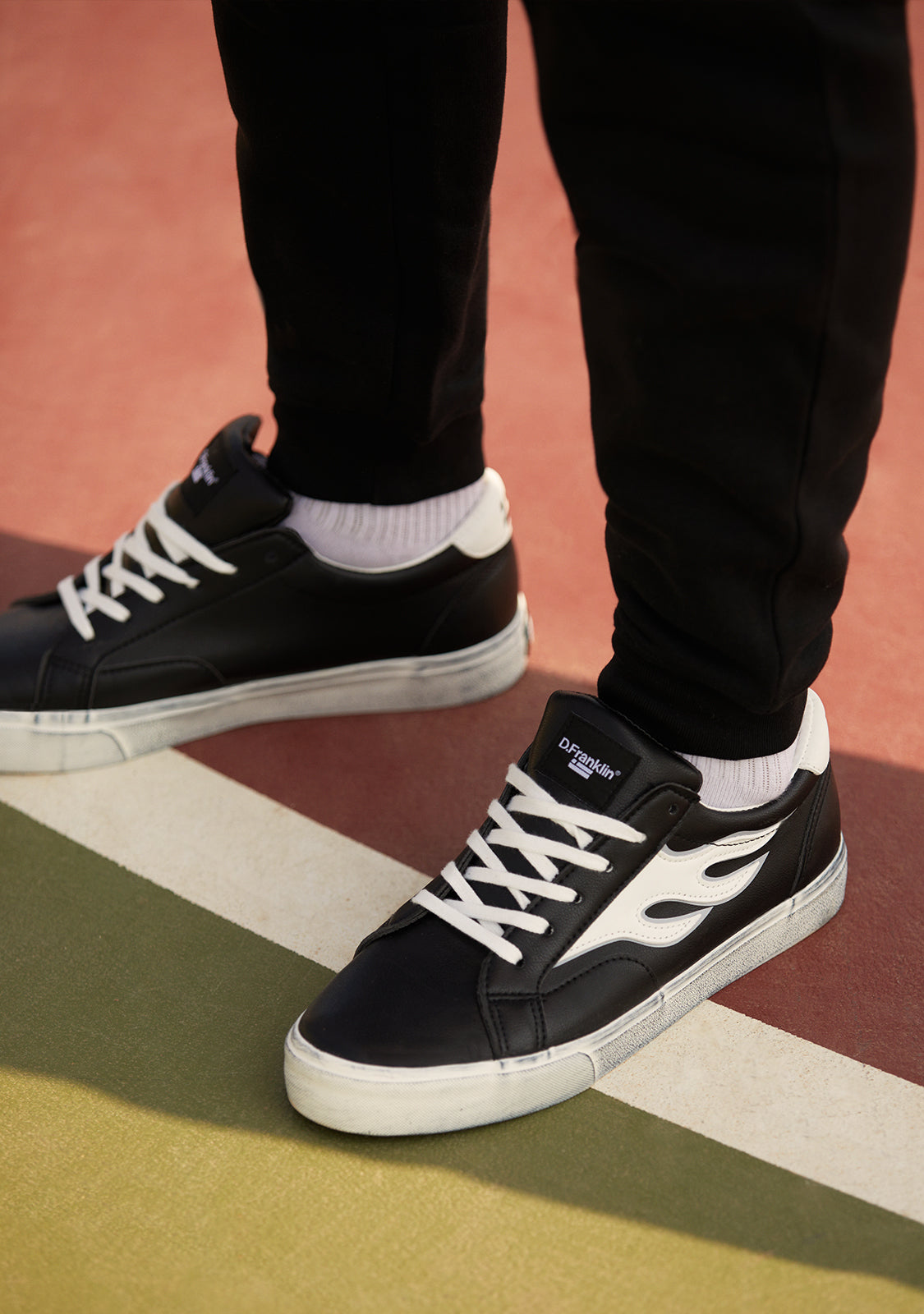 Izrađene od crne umjetne kože s bijelim detaljima plamena sa strane. Ove tenisice imaju pamučne vezice kao i naš grb i zastavu na peti. Potplat otporan na klizanje omogućuje udoban, ekstra lagan otisak.