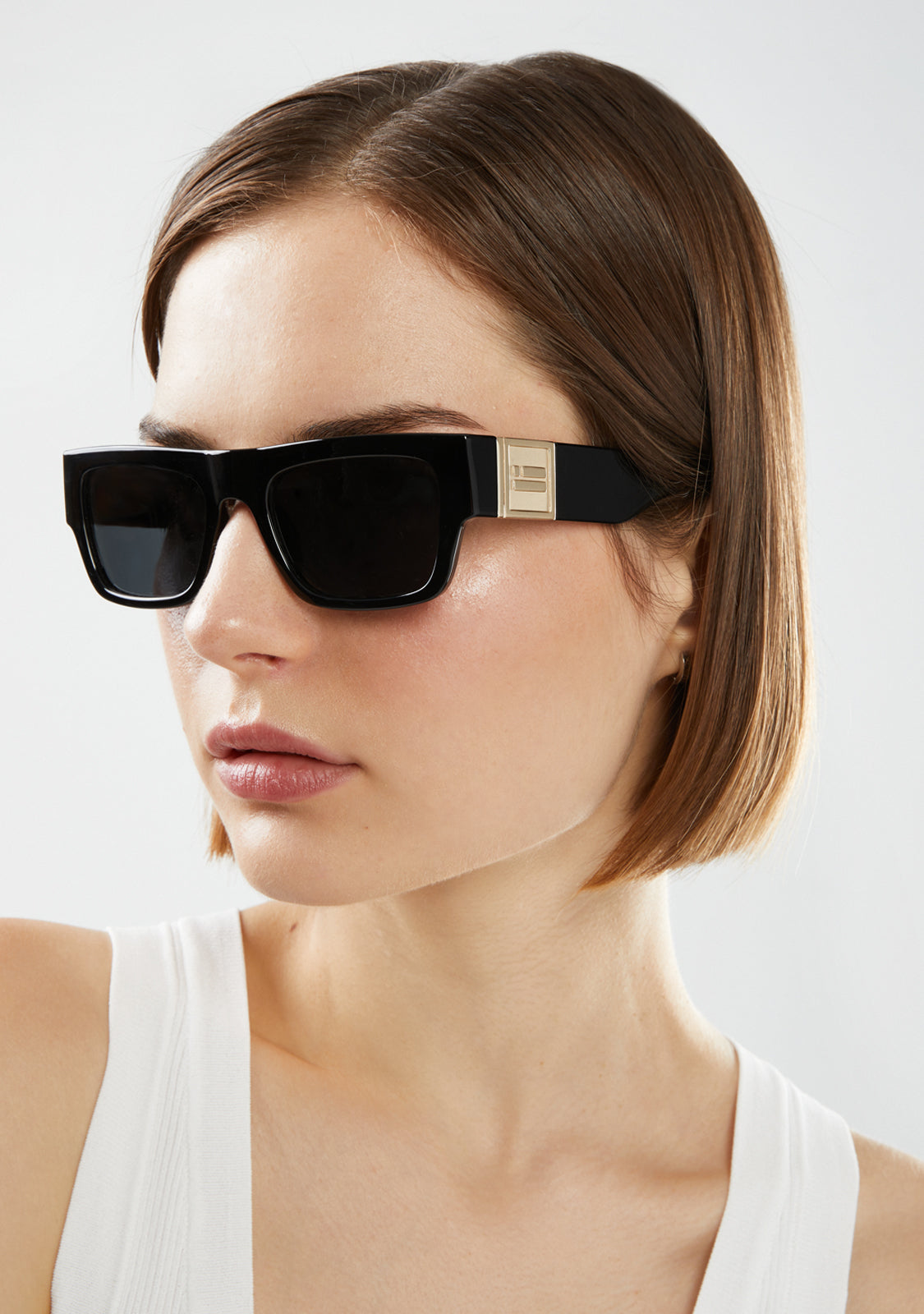 Linearne sunčane naočale. Model koji hvata urbanu estetiku u pravokutnom okviru. Prava zvijezda za vaše najodvažnije outfite. S metalnim detaljima koji ističu vaše osobine.