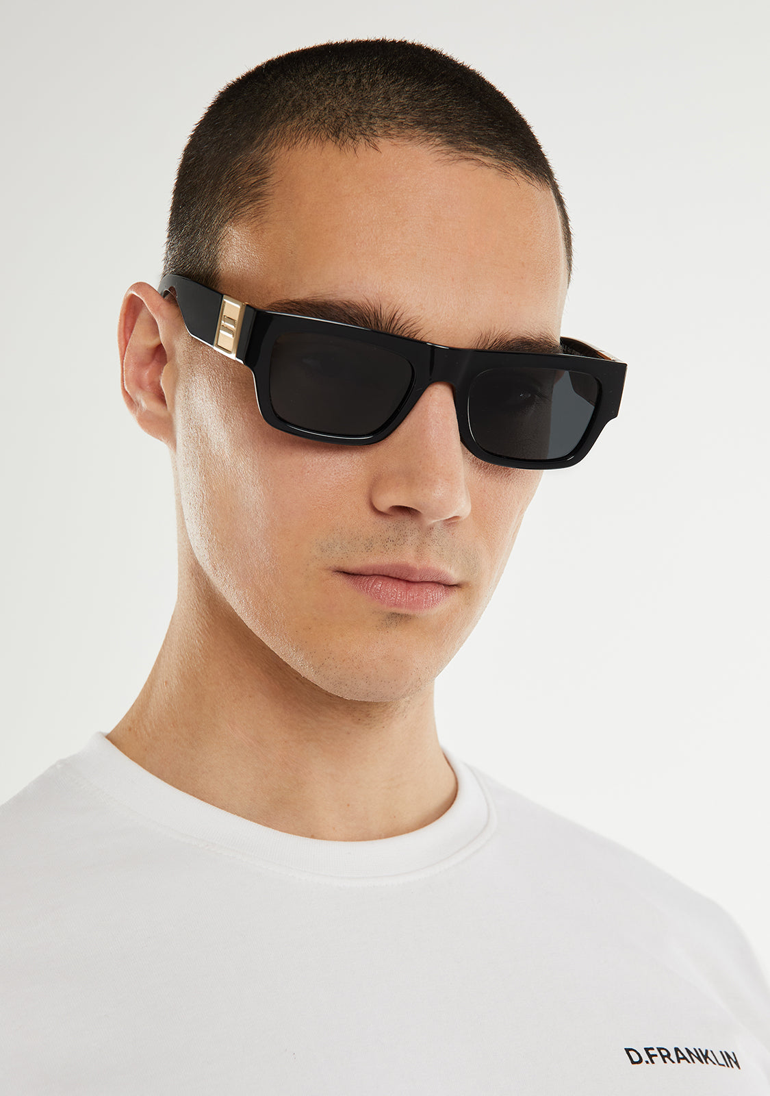 Dimljeni polarizirani leće i tamni okviri poboljšavaju estetiku ovog dizajna. Ima našu prepoznatljivu D.Franklin zastavu s metalnim zlatnim završetkom na oba sljepoočnica. S širinom leće od 52 mm i prednjim okvirom od 141 mm, ove naočale će laskati većini lica. Bočne sljepoočnice imaju duljinu od 140 mm.
