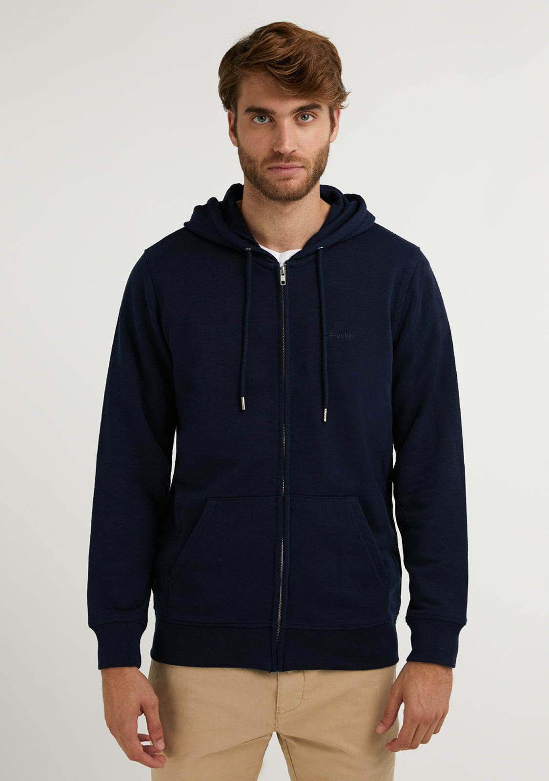 Pridružite se udobnom trendu s našim Hoodie s vezom i patentnim zatvaračem u mornarskoj plavoj. Ima prekriveni središnji patentni zatvarač i kapuljaču. Izrađeno od organskog pamuka. Praktična kengurica. Uske rukave. Pružit će vam odličnu prozračnost, rastezljivost i udobnost.