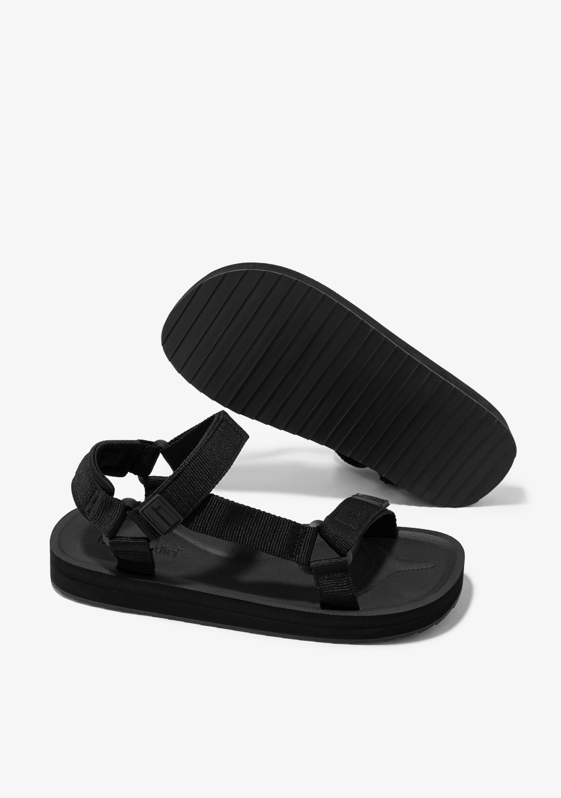 Bijeg iz grada. Odmor od svakodnevnog života. Dizajniran za otkrivanje novih mjesta daleko od poznatog. Sportski stil sandala s crnim čičak trakama. Izrađen s EVA potplatom za veći komfor.