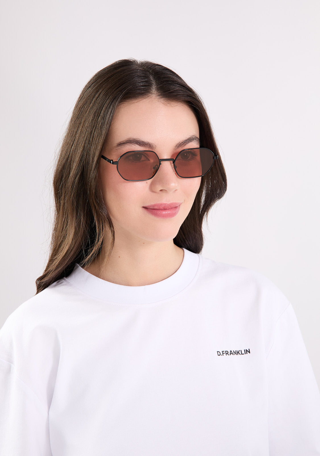 Prozirne sunčane naočale s geometrijskim dizajnom. Nasljeđe najikoničnijih komada iz 70-ih kombinira se s izborom modernih detalja.