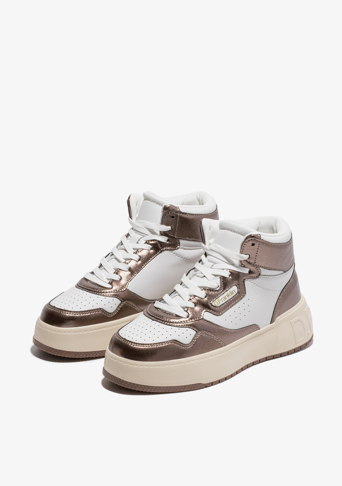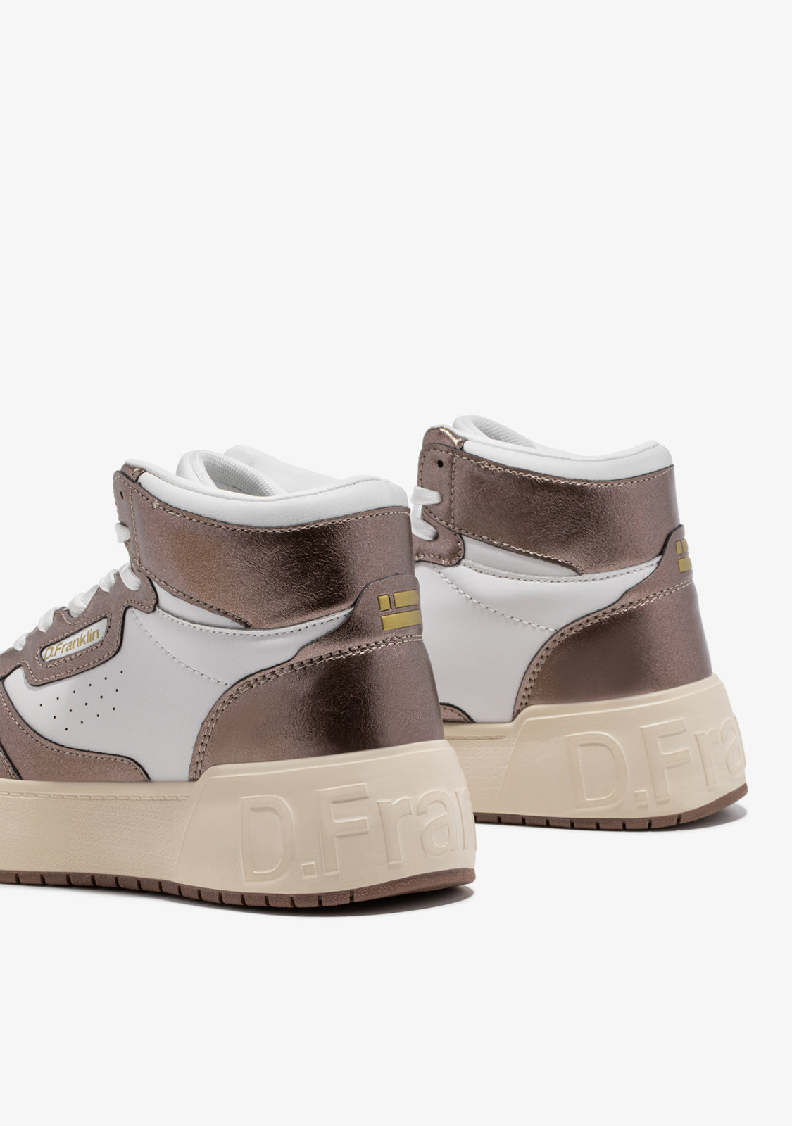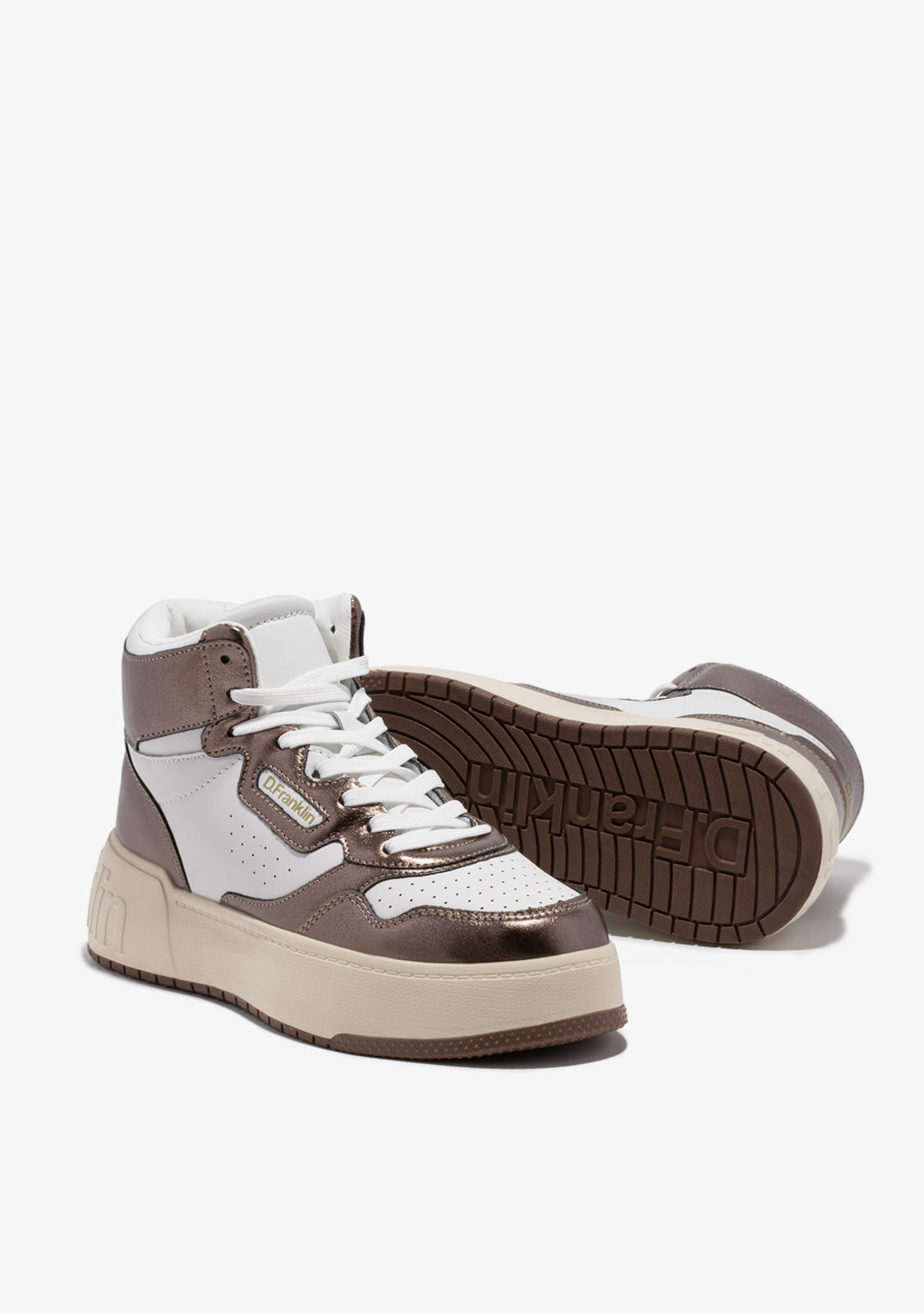Tenisice Court D.Franklin izrađene su u tamnom brončanom tonu s pamučnim vezicama. Kontrastna potplat ima urezani logo na peti i potplatu. Imaju visinu od 4 cm i phylon potplat za lagano ublažavanje.