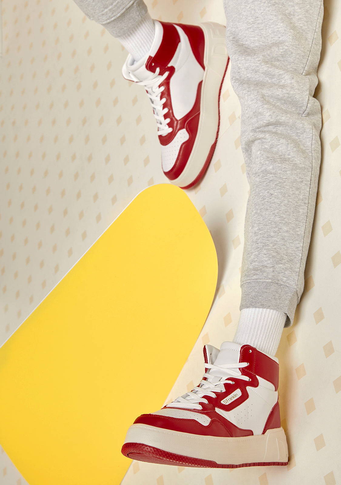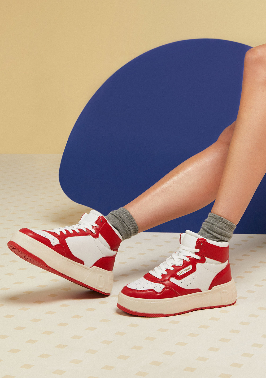 Tenisice Court D.Franklin izrađene su s crvenim detaljima i pamučnim vezicama. Kontrastna potplat ima urezani logo na peti i potplatu. Imaju visinu od 4 cm i phylon potplat za lagano ublažavanje.