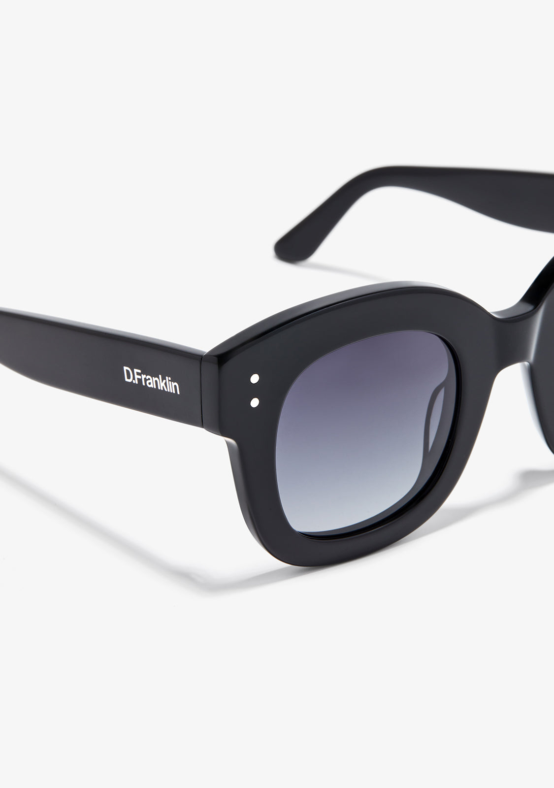 Holly Black / Gradient Black od D.Franklina ističu se svojim sofisticiranim dizajnom i naprednom funkcionalnošću. S okvirom, mostom i ručkama izrađenim od acetata, ove sunčane naočale pružaju izdržljivost i premium osjećaj, osiguravajući udobnost tijekom cijelog dana.