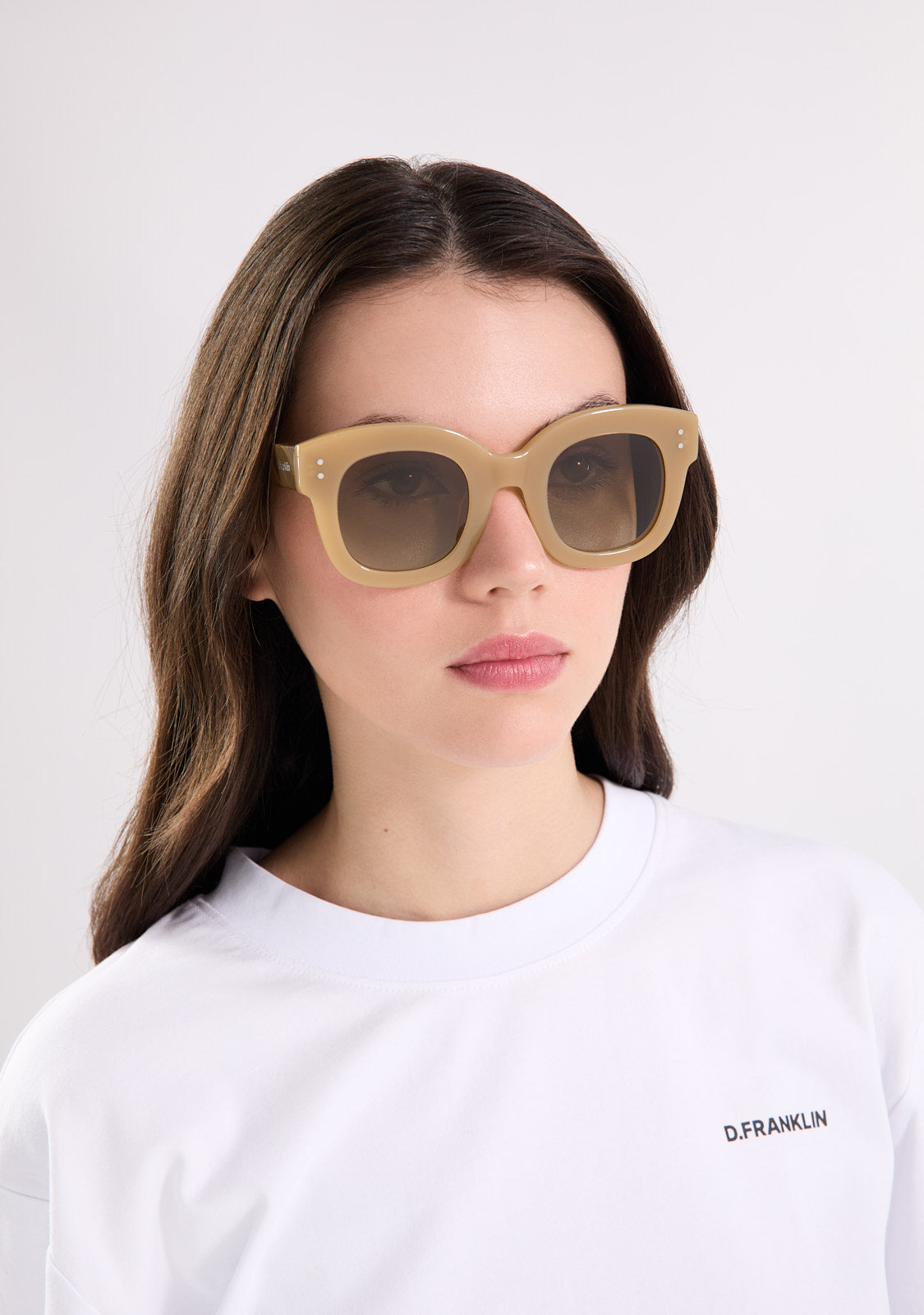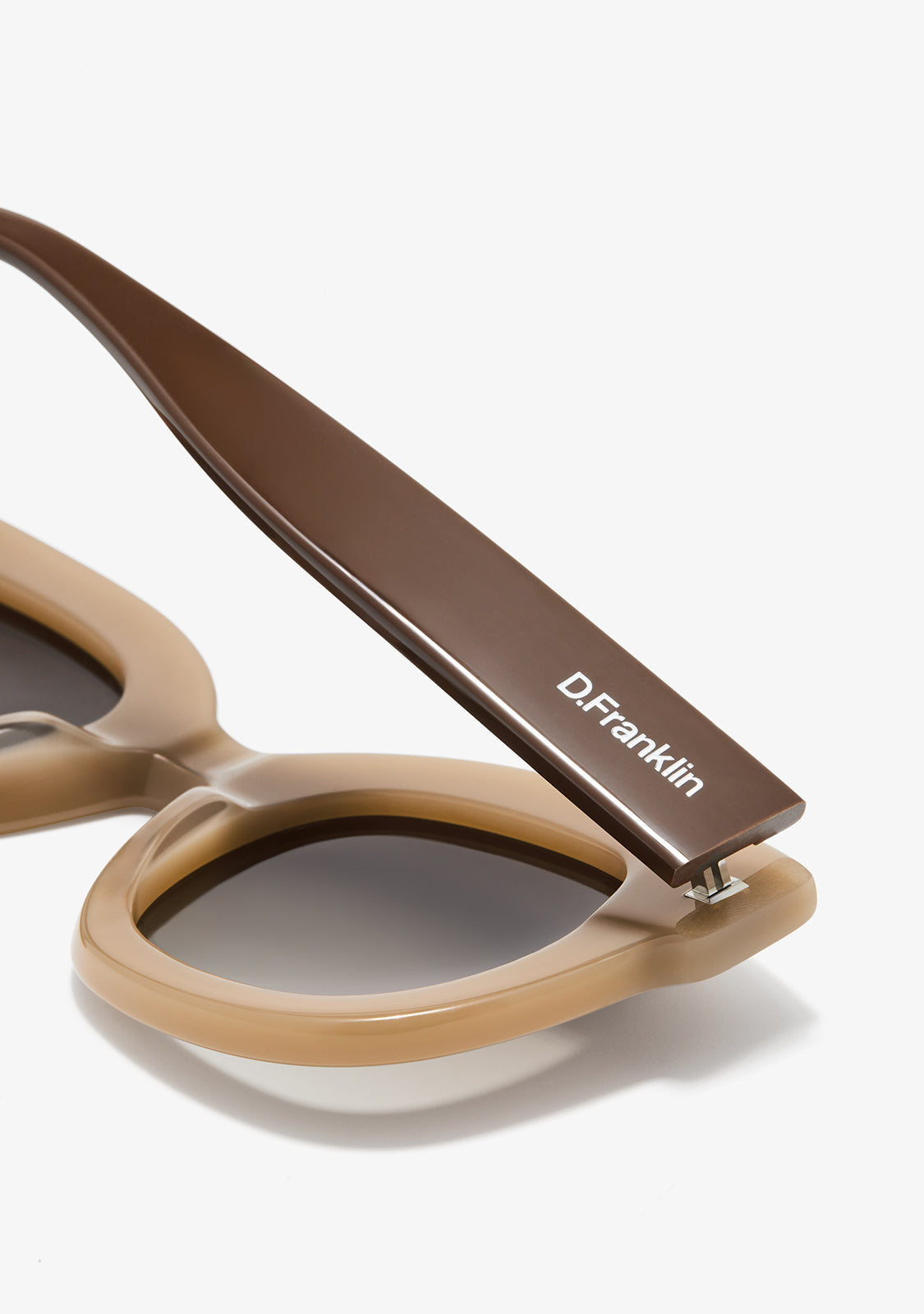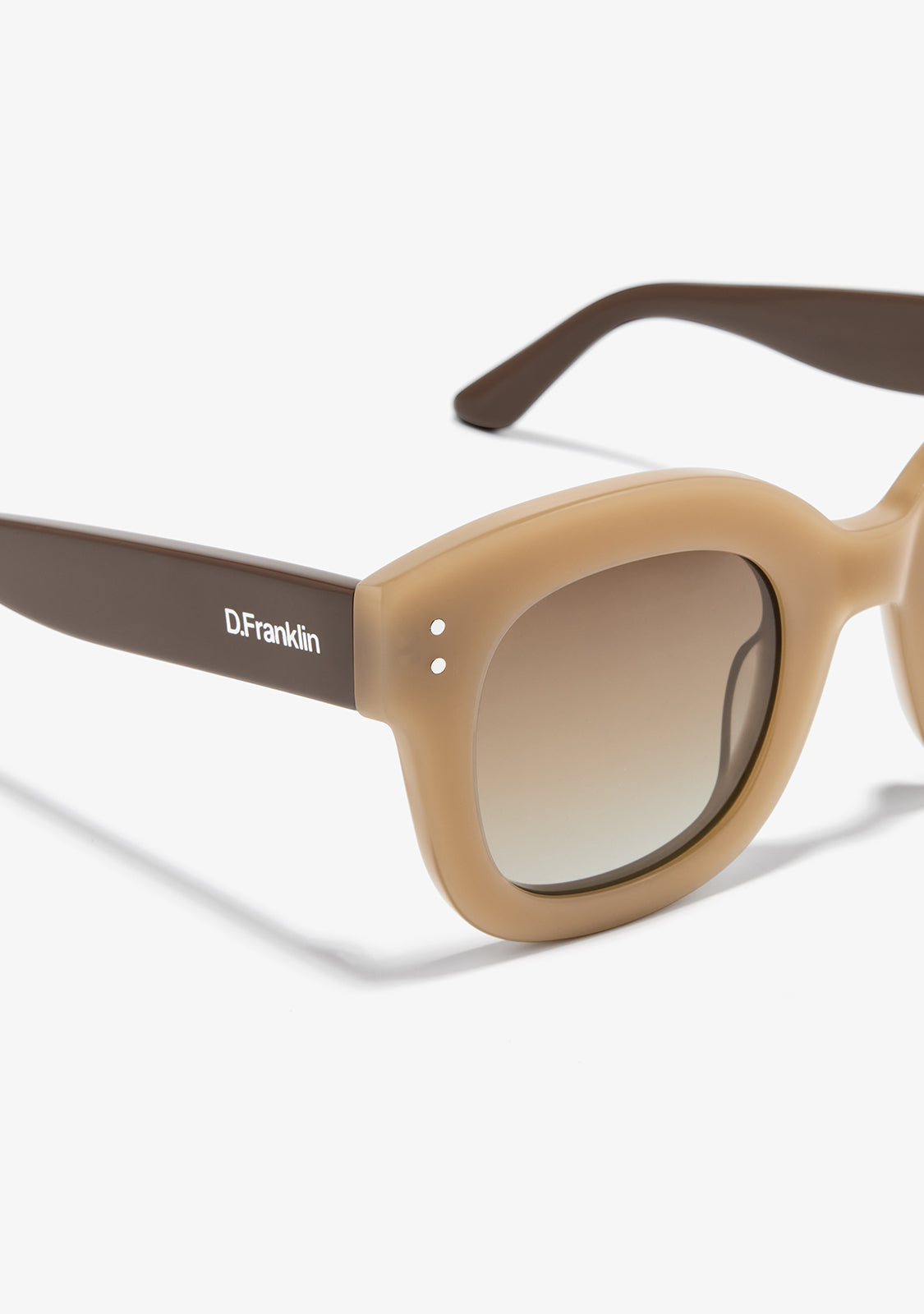 Holly Sand / Gradient Amber od D.Franklina ističu se svojim sofisticiranim dizajnom i naprednom funkcionalnošću. S okvirom, mostom i sljepočnicama izrađenim od acetata, ove sunčane naočale pružaju izdržljivost i premium osjećaj, osiguravajući udobnost tijekom cijelog dana.