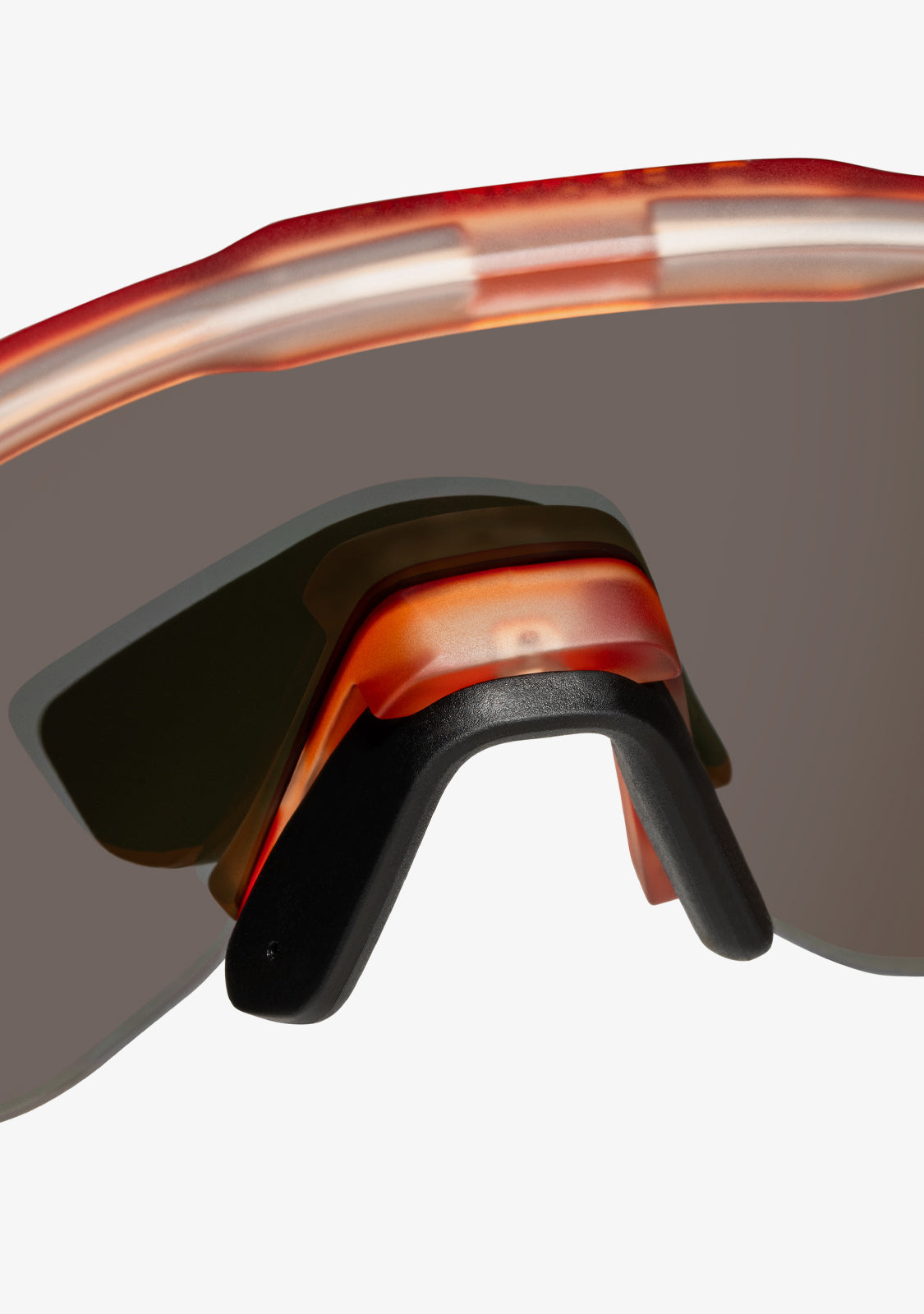 Model Hurricane Red ističe se hrabrim crvenkastim završetkom i aerodinamičnim okvirom. Ima prednji dio od 142 mm i leće od 152 mm, precizno dizajnirane za optimizaciju protoka zraka i smanjenje otpora vjetra. Ručkice duge 140 mm nose naš amblem s obje strane, dok silikonski jastučići na završecima i mostu za nos osiguravaju stabilno i udobno prianjanje tijekom svake aktivnosti.