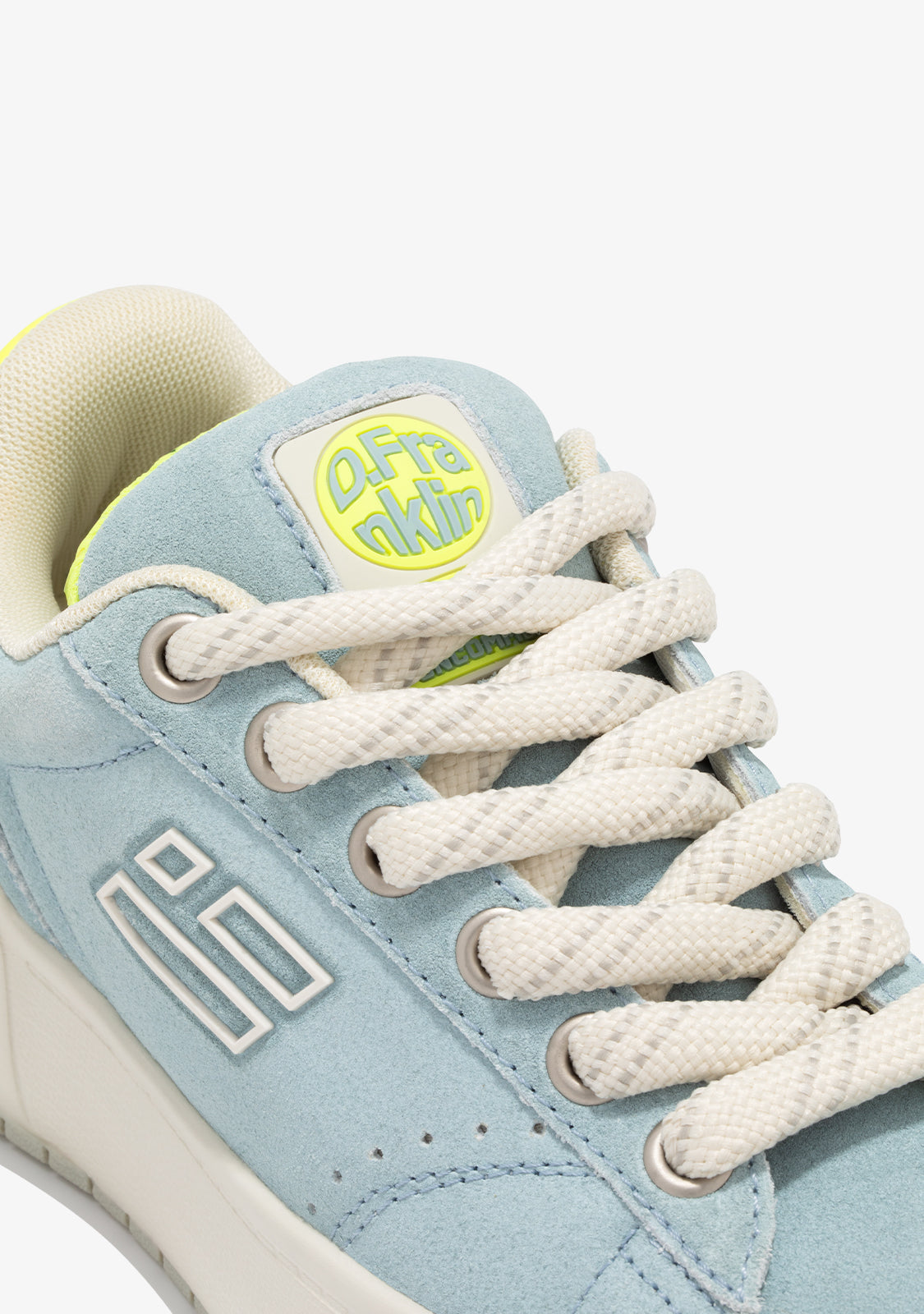 Ključni Klasični Plavi model D.Franklina kombinira sofisticiranost i urbani dizajn u jedinstvenom modelu. Izrađeni od visokokvalitetnog antilopa, nude glatku i elegantnu završnu obradu koja ističe njihov premium karakter. Plavi dizajn dodatno je naglašen upečatljivim žutim detaljem na peti, dodajući modernu i hrabru notu.