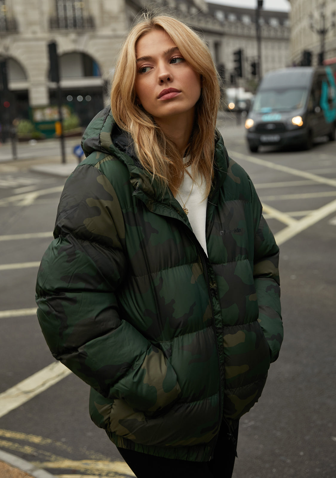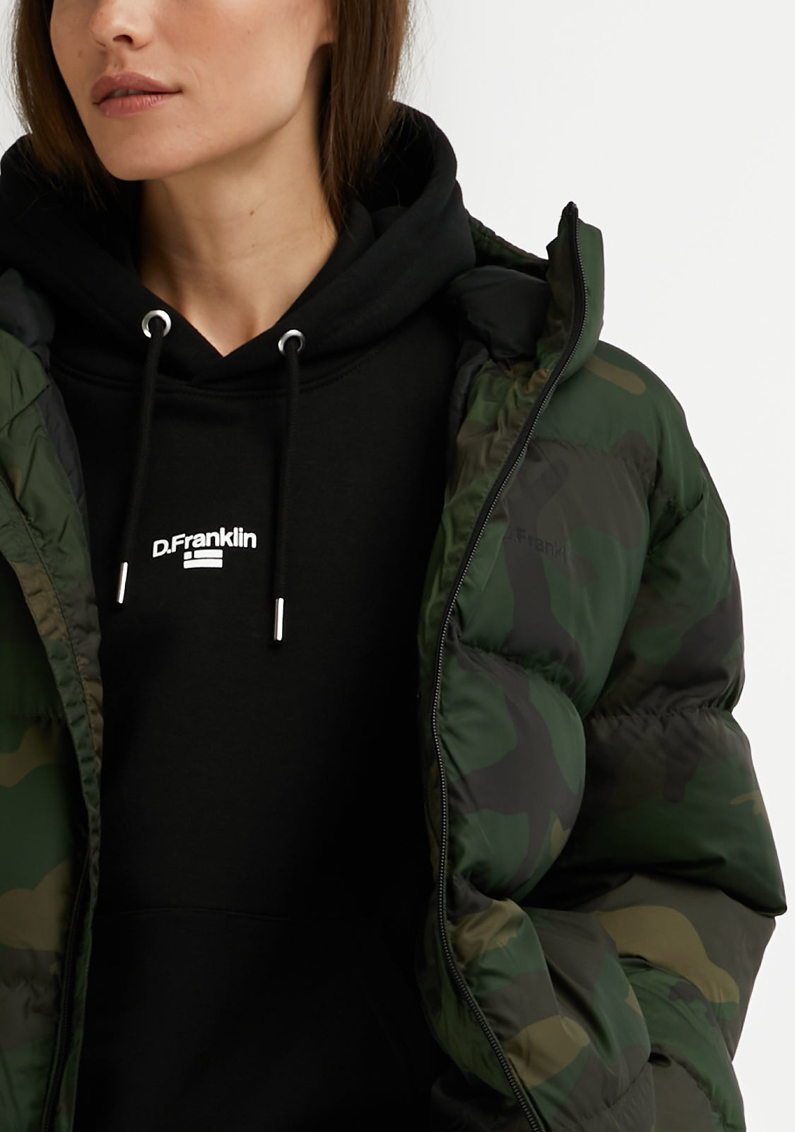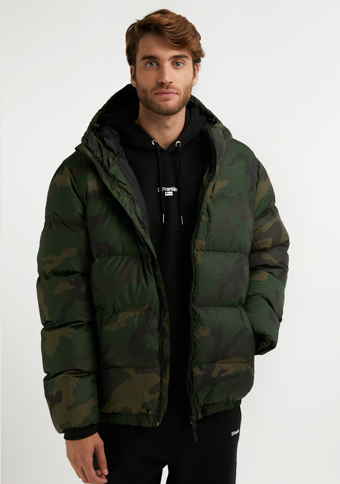 Ne propustite našu novu kolekciju jakni! Logo Puffer Camo kombinira stil i udobnost, bez gubitka suštine D.Franklin. Uske rukave i rebraste manžete. Podesiva podstavljena kapuljača. Središnje prednje zatvaranje na zip s zaštitnikom za bradu. Dva bočna džepa i unutarnji džep na prsima, svi sa zipom. Napunite svoje lookove stilom i ne dopustite da vas hladno vrijeme zaustavi!