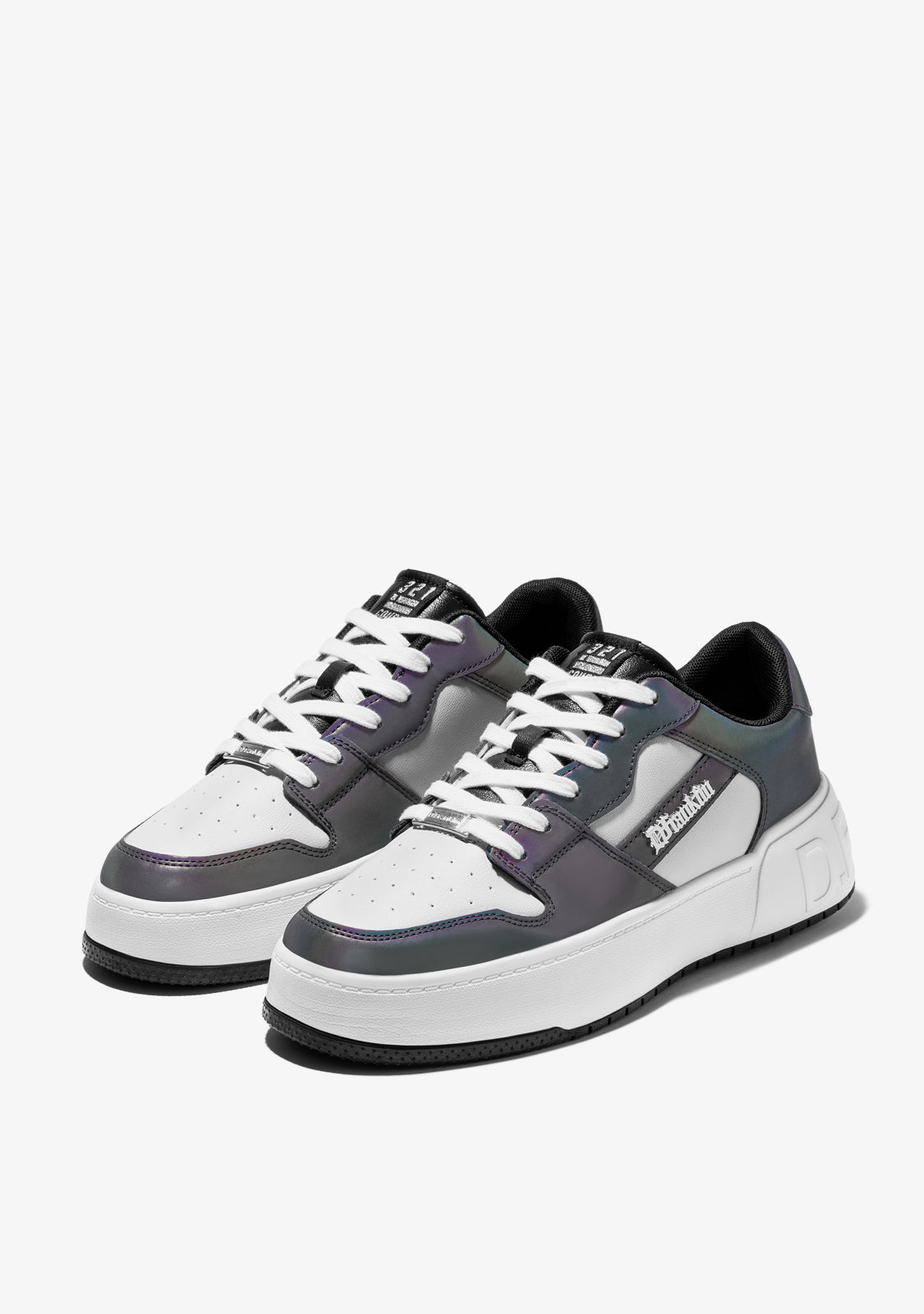 Predstavljamo D.Franklinovu Court Collection. Novi model inspiriran sportom, stvoren s terena kako bi ponudio hrabar i svestran dizajn. Low Court Bijela /Reflektivna karakterizirana je reinterpretacijom klasične linije slojeva.