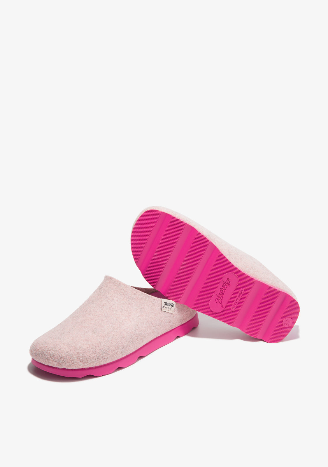 Zaštitite se od hladnoće s ovim dizajnom napravljenim od ponovo upotrebljivih materijala. Njegov gornji dio od recikliranog PET filca ima ružičastu nijansu s malim fuksija detaljima. Osim toga, kontrastna potplat je dizajnirana s dvobojnom prirodnom gumom napravljenom od recikliranih čestica.