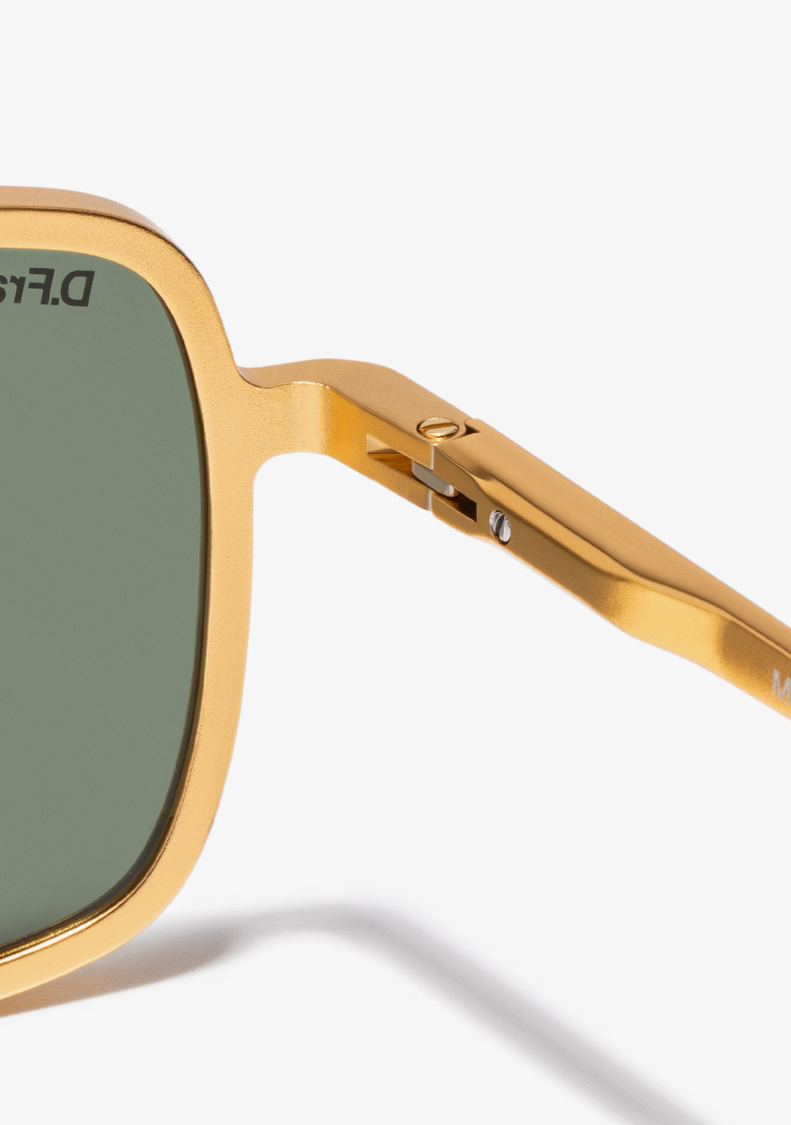 Zahvaljujući njihovoj aluminijskoj konstrukciji, ove naočale su ultra lagane. Polarizirani leće i okvir zlatne boje pojačavaju prepoznatljiv dizajn. Ove sunčane naočale imaju naš grb na desnoj leći i metalni logo sa strane sljepoočnica. Također ima prednji okvir od 140 mm i širinu leće od 50 mm, što odgovara većini lica. Sljepoočnice su duge 138 mm.