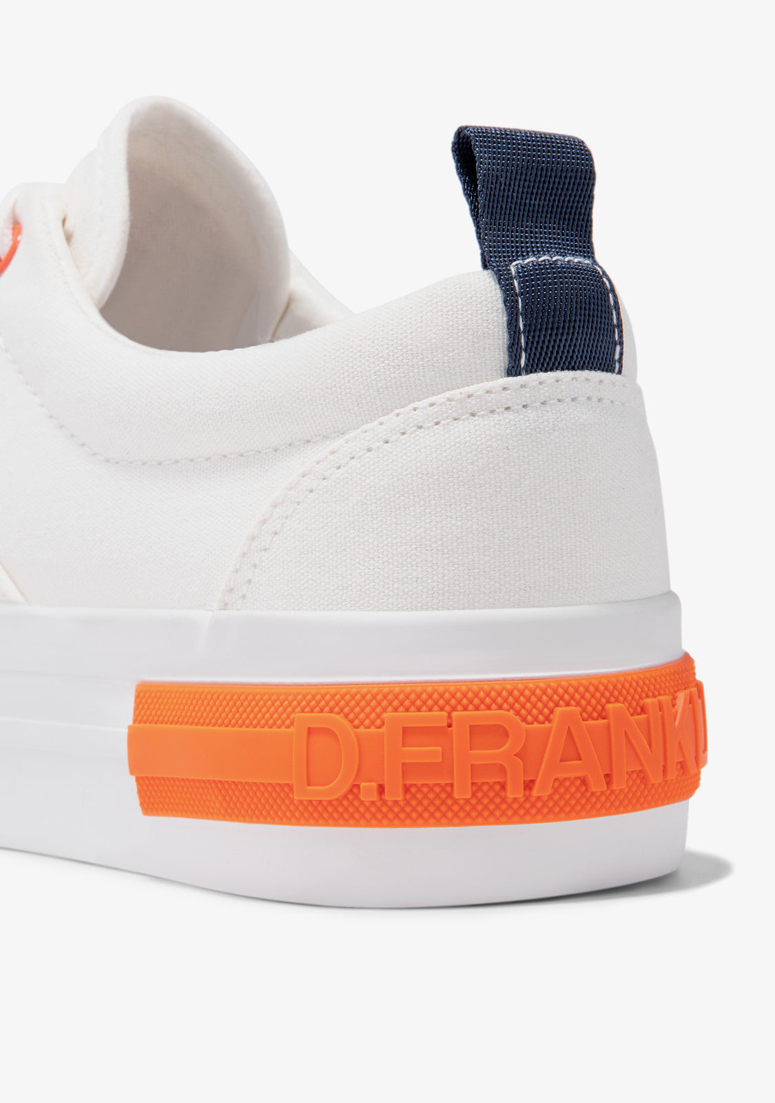Naš bijeli One Way dizajn izrađen je od platna. Bijela gumena potplat, podstavljeni ovratnik i prilagođeni narančasti natpis na peti. S visinom od 4 cm i našim zastavnim emblemom sa strane.