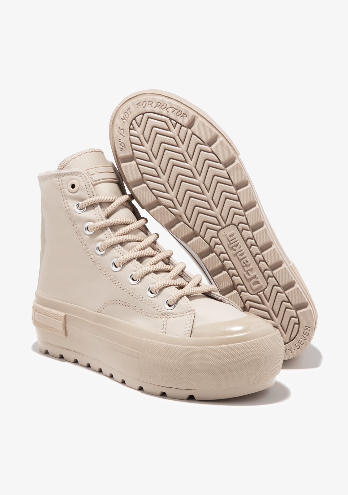 Proslavite hladnoću s ovim podstavljenim dizajnom. Naše tenisice spajaju udobnost i toplinu u bež toniranoj košulji. Usklađene zaobljene vezice dodaju urbani estetski izgled i podršku.