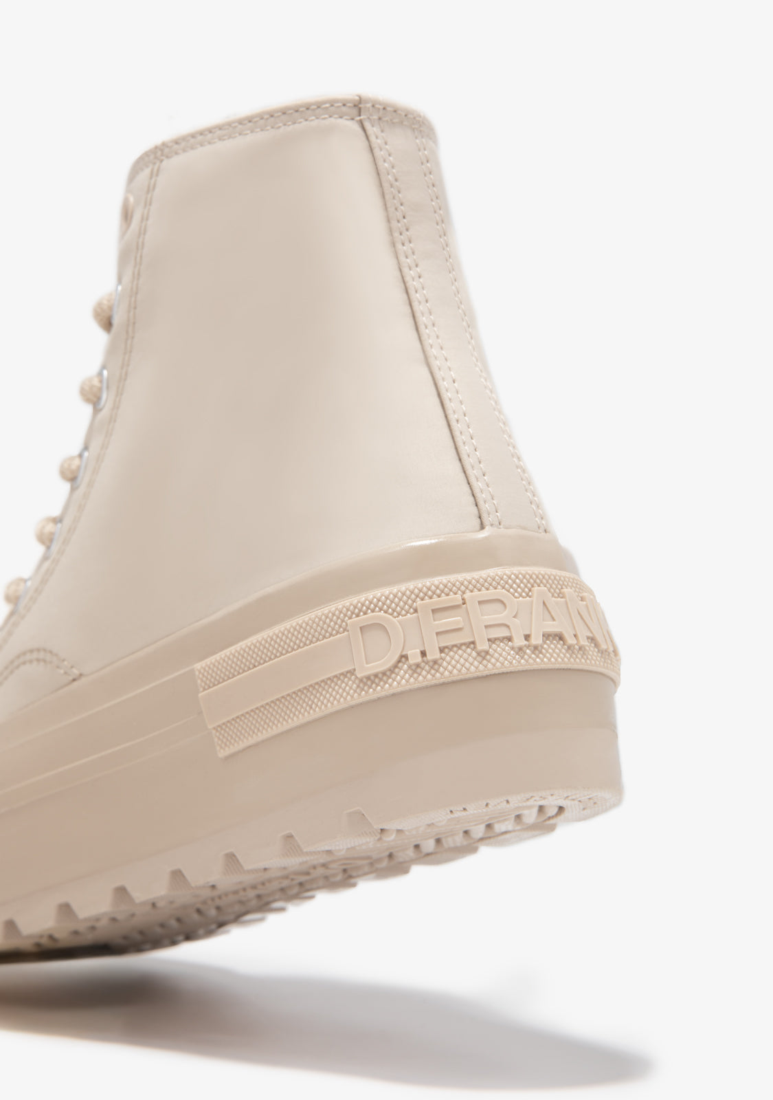Jednobojni visoki tenisice D.Franklin. Različiti putevi za otkrivanje. Različiti načini za to. Podsjetnik da možete ostati u trendu s opuštenim, jednostavnim završecima.