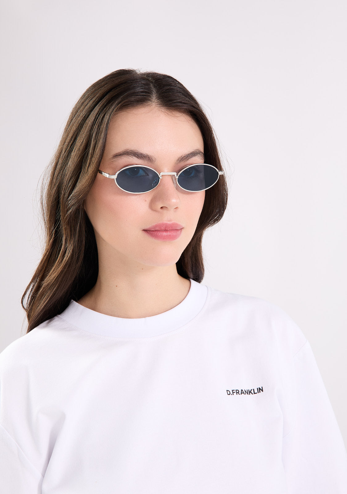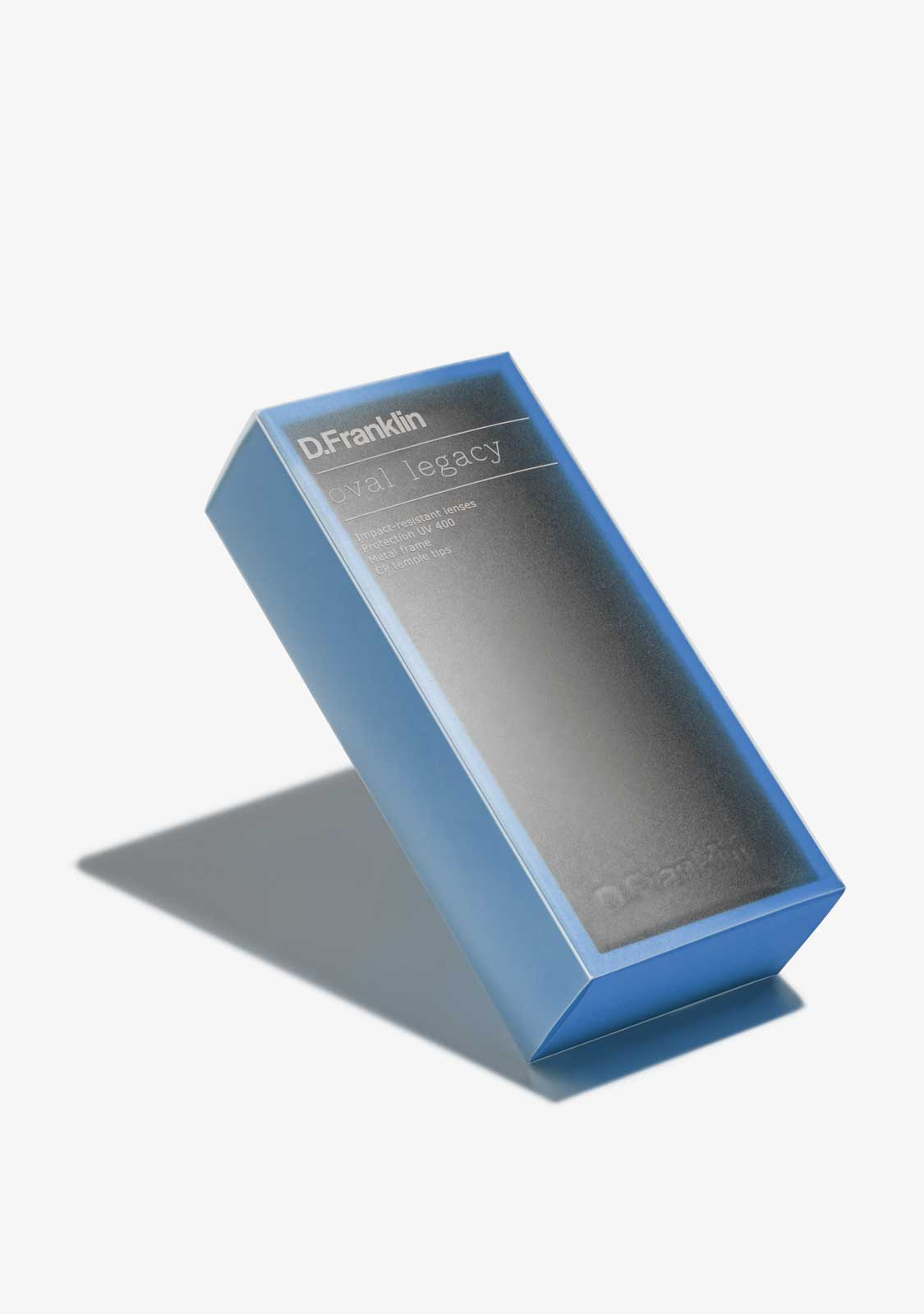 Dizajn Oval Legacy ima metalni završetak s kružnom estetikom. Njegov okvir u srebrnoj boji kombinira se s plavim lećama koje smanjuju odsjaj, omogućujući suptilan pogled kroz njih i definirajući crte lica. Prednja strana mjeri 135 mm, a širina leće je 51 mm. Naočale su duge 140 mm i uključuju naše prepoznatljive detalje. Retro, ali minimalistički komad koji će upotpuniti svaki outfit.